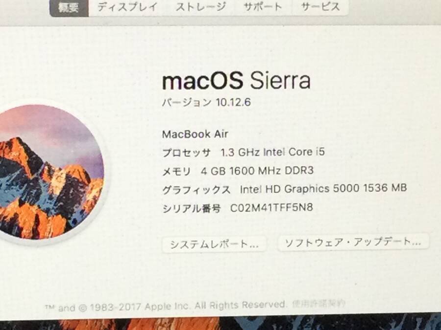 Apple MacBook Air A1465 macOS Core i5 1.30GHz 4GB 256GB(SSD)■一部保証品