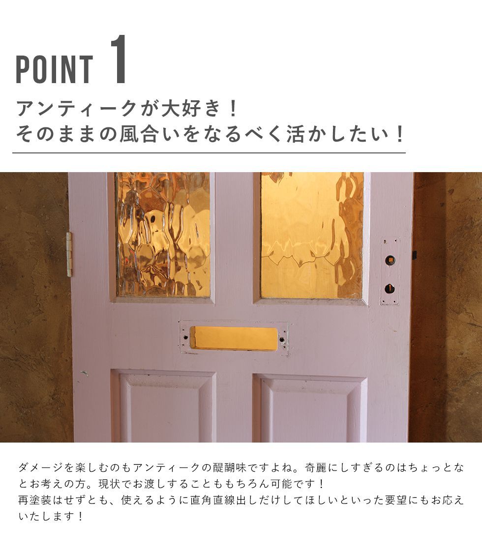 イギリス、フランスを中心にヨーロッパ中から直接買い付けをした本場のアンティーク品となります。 高級なイメージのアンティークですが、当店ではリーズナブルにアンティークをお楽しみいただけるよう、アンティークドアを一度に100~300枚以上。ステンドグラスは1,000枚以上を一度に輸入。 全国でも有数の買い付け量を誇ります。 創業以来現在の買い付け量を保つ事で、現地ディーラーとの密な信頼関係を構築。当社に向けてより良い物を提供してもらえる環境作りを維持し、現在では現地取引先約20社と提携しています。 また当店ではアンティークのプロフェッショナルが常駐する工房を完備。修理、メンテナンスはもちろん、ステンドグラス、ドアの制作からカスタムまで、アンティークのご相談はウェリントンにお任せください。 ネットに載っていない商品もまだまだございます。京都伏見のショールームにも是非お越しくださいませ。 ※修理に関するご注意※ ■ 標準修理に関しては別途料金にて承ります。事前に仕上がりサイズを必ずご確認くださいませ。 ■ 標準修理をご依頼の場合、決済確認後の着手となります。恐れ入りますが代引きでのご決済はお断りしております。 |