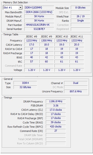 デスクトップ用 SK_Hynix DDR4 PC4-2666V-UA2-11 PC4-21300 8G×4枚(32GB)【A2】