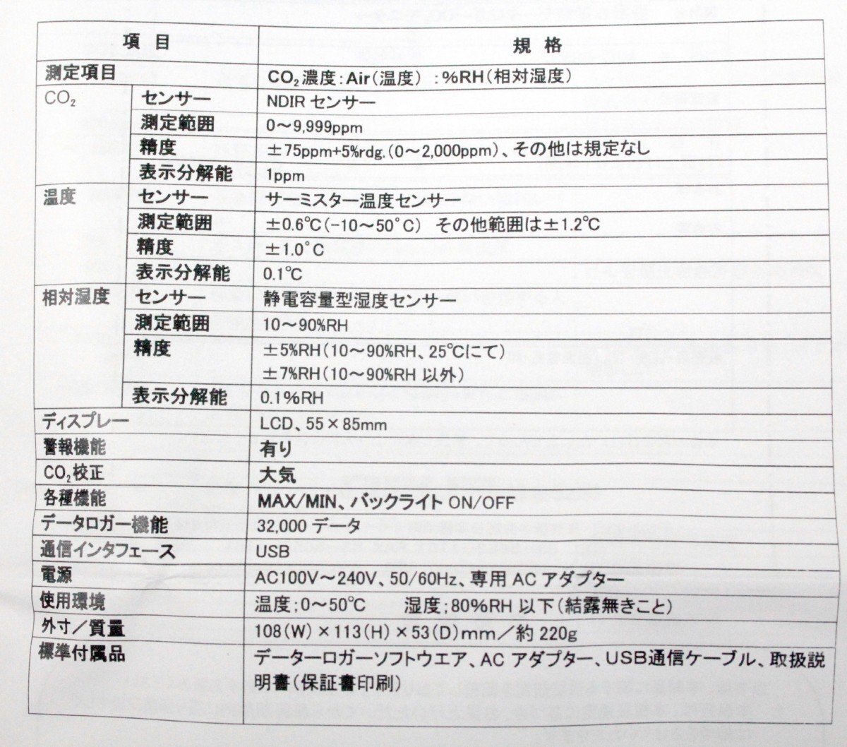 フソーのCO2濃度計が入荷致しました。 外箱に傷が見られますが、本体にはあまり使用感が無く、 概ね綺麗な状態です。 通電、動作に問題はありませんでした。 本体に校正機能がございますので、ご使用の前に校正をお願い致します。 詳しい商品状態につきましては写真よりご確認ください。 この機会に是非ご検討宜しくお願い致します。 【詳細】