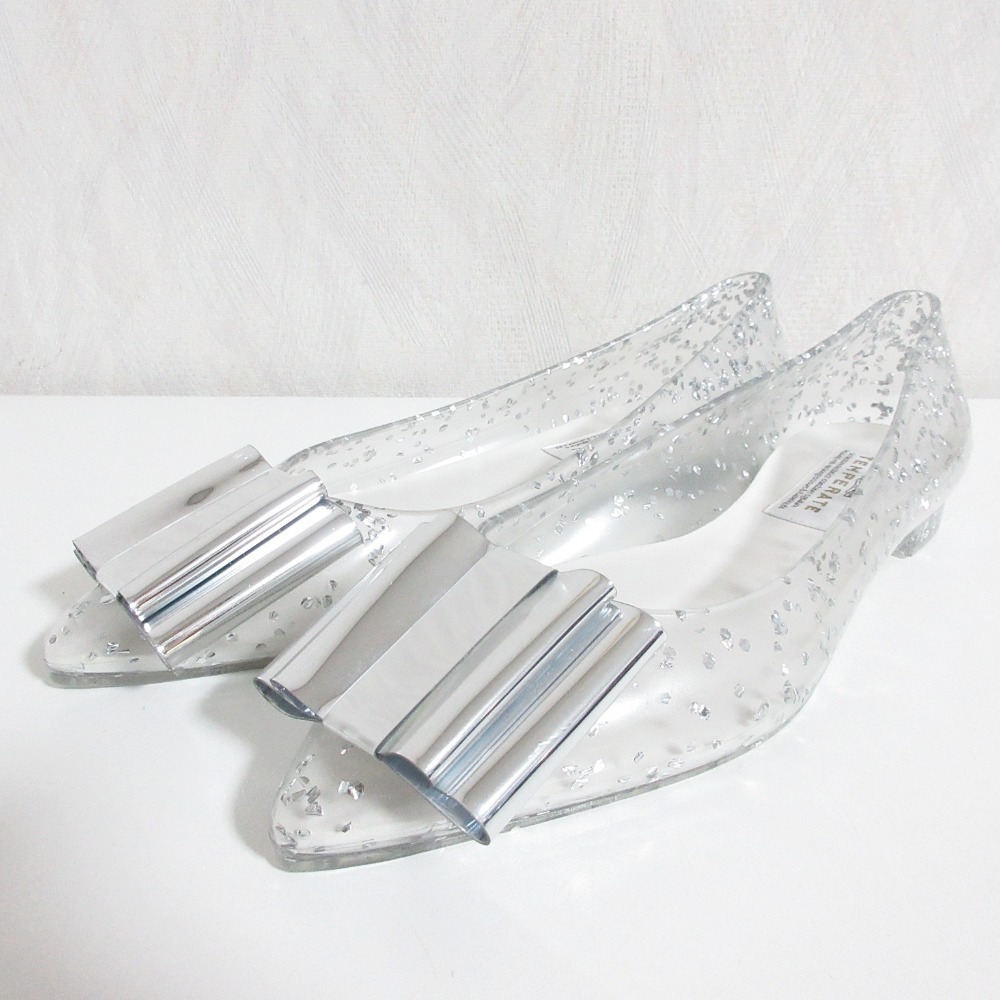 商品名:TEMPERATE テンパレイト リボン パンプス レインシューズ バレエシューズ 37 クリア シルバーカラー