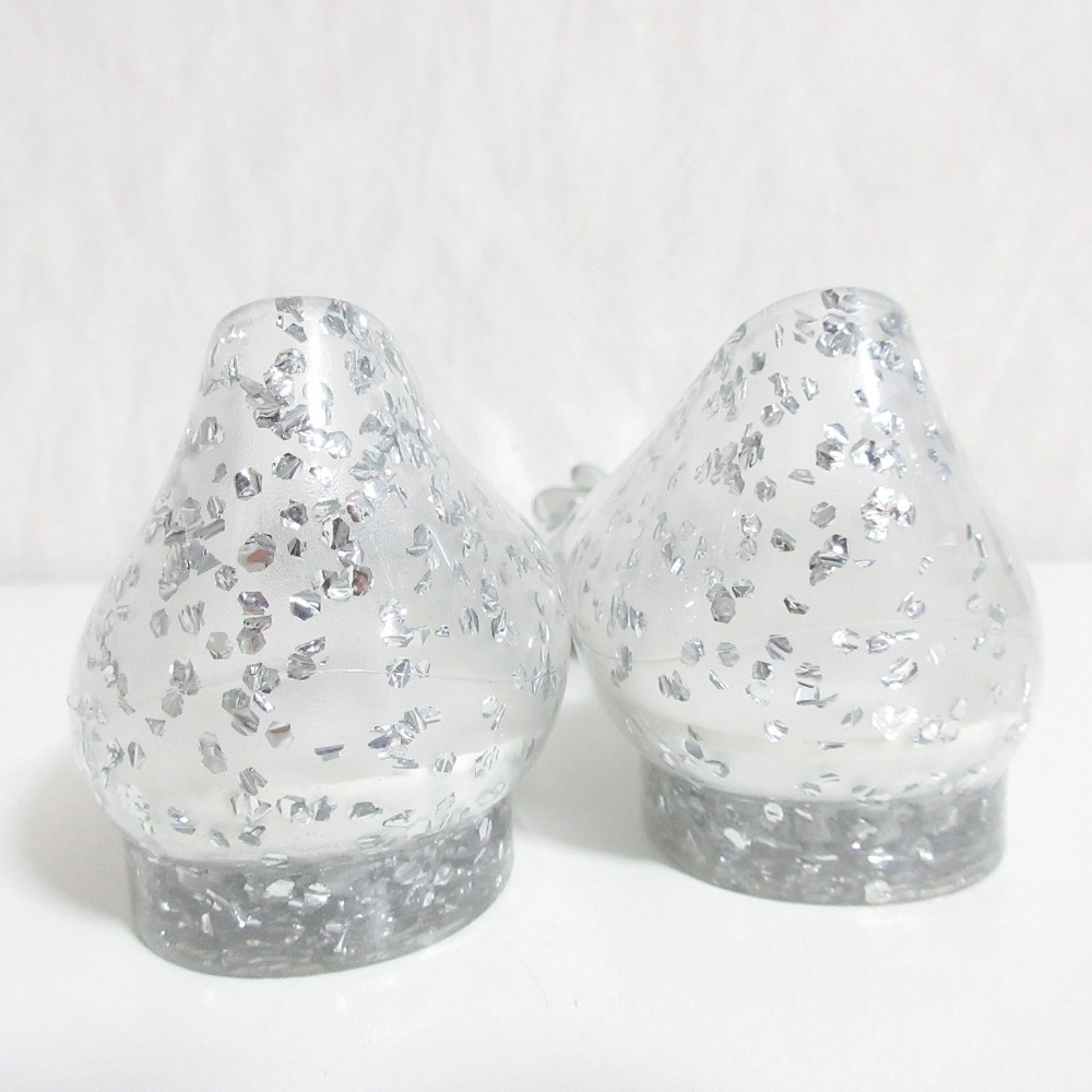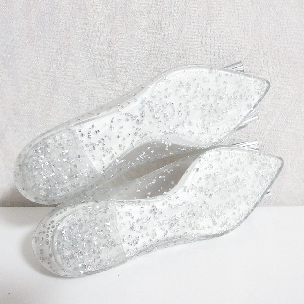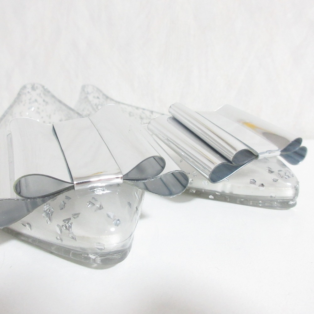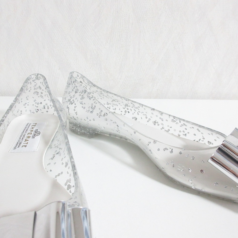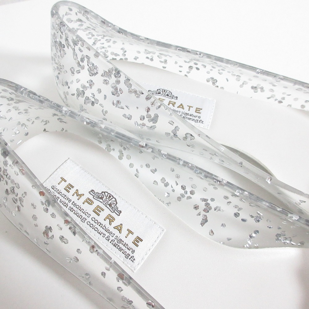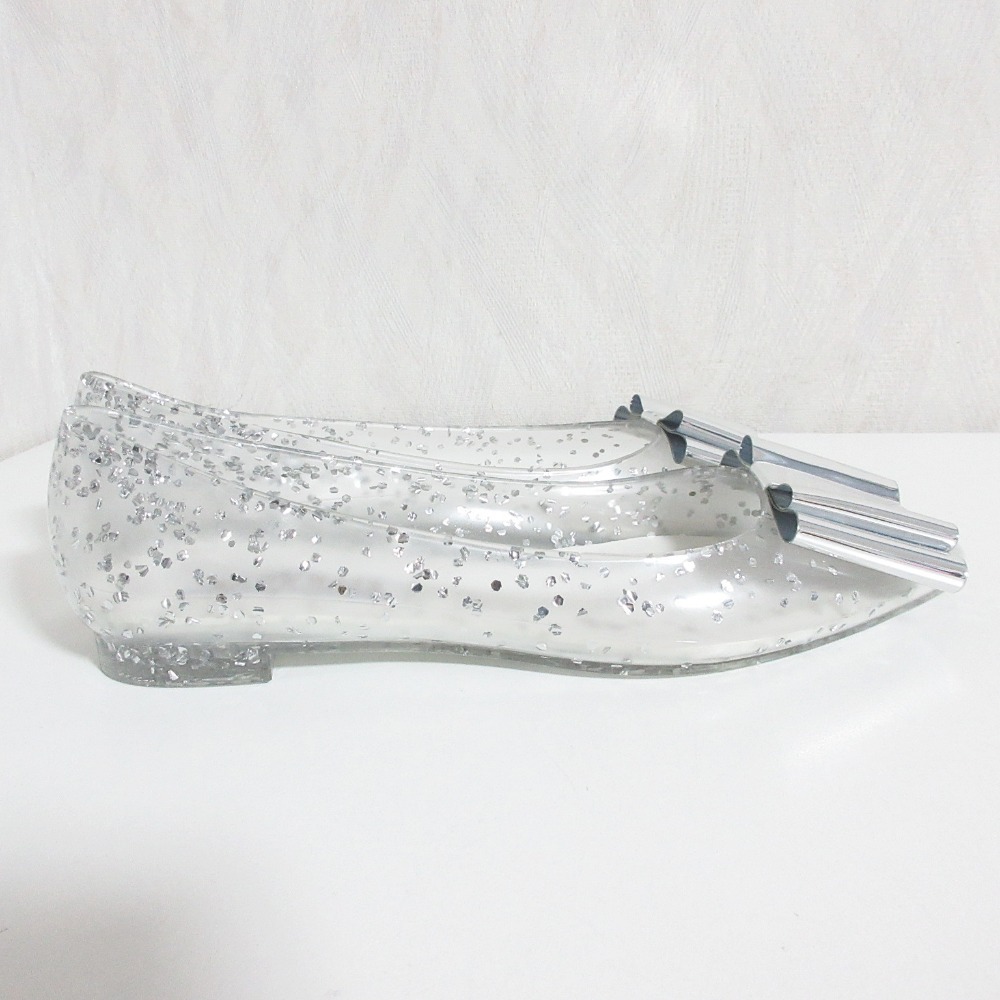 美品 TEMPERATE テンパレイト リボン パンプス レインシューズ バレエシューズ 37 クリア シルバーカラー
