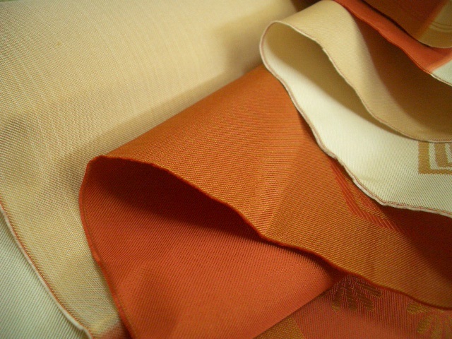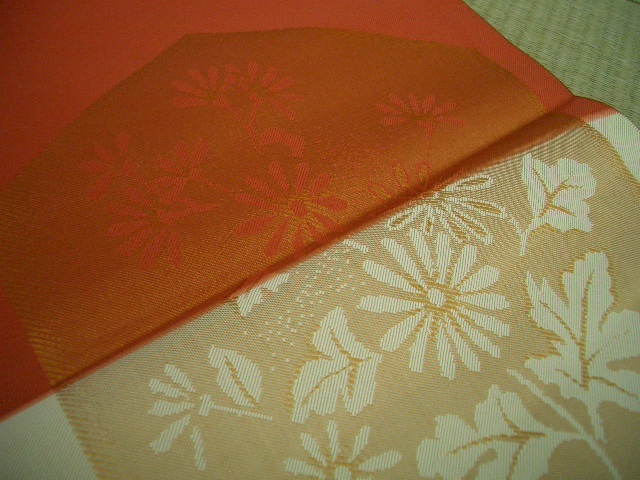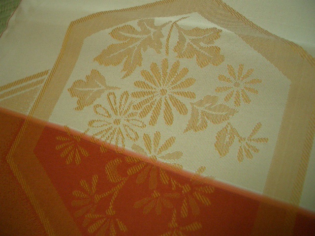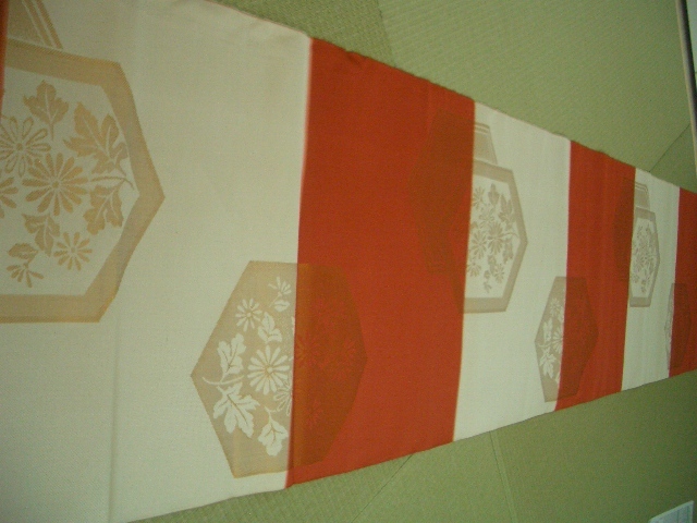 未使用正絹はぎれ六角に菊の花 308㎝ リメイク古裂夜具地ハンドメイド材料