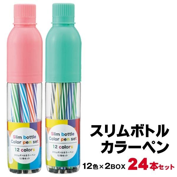 【24本セット】カラーペン 12色セット×2 合計24 水性ペン マーカー お絵かき 文房具 イラスト 画材 送料無料 5M◇ カラーペン2個