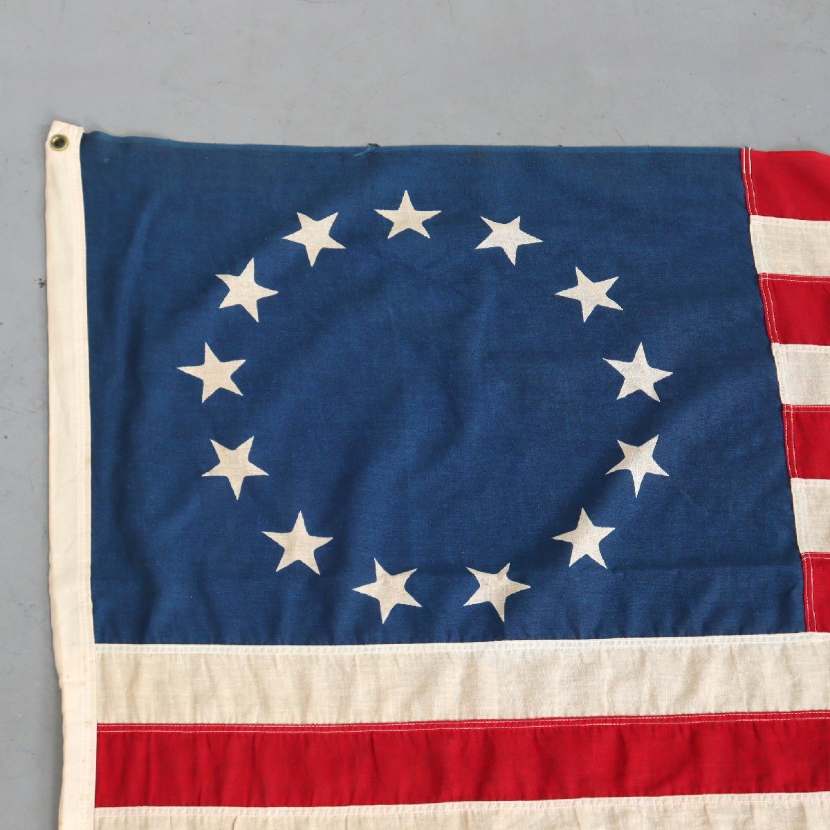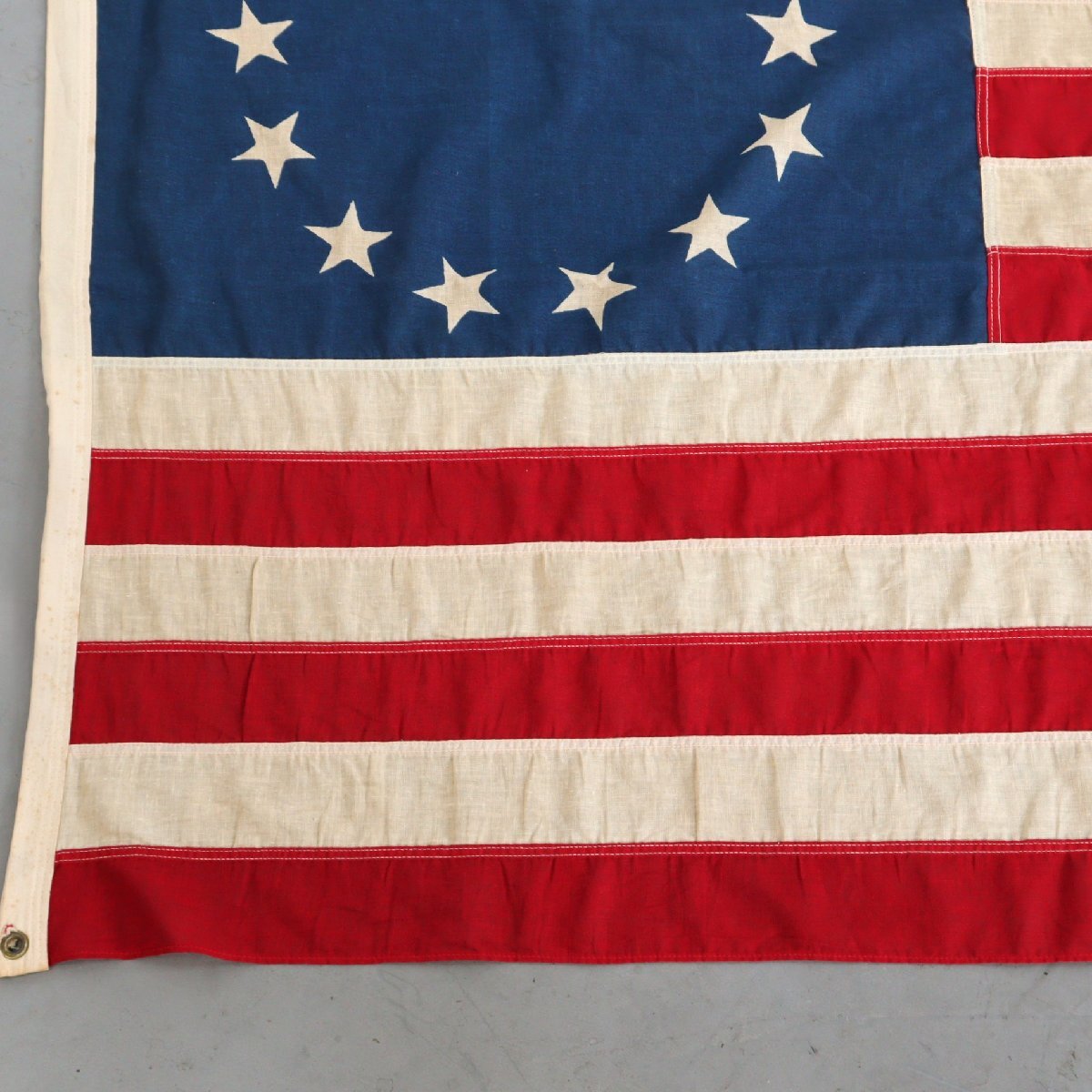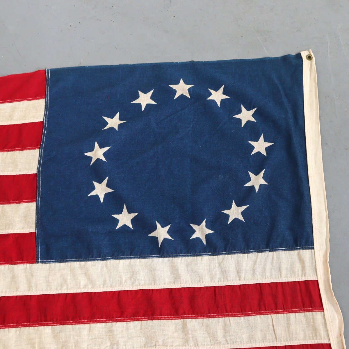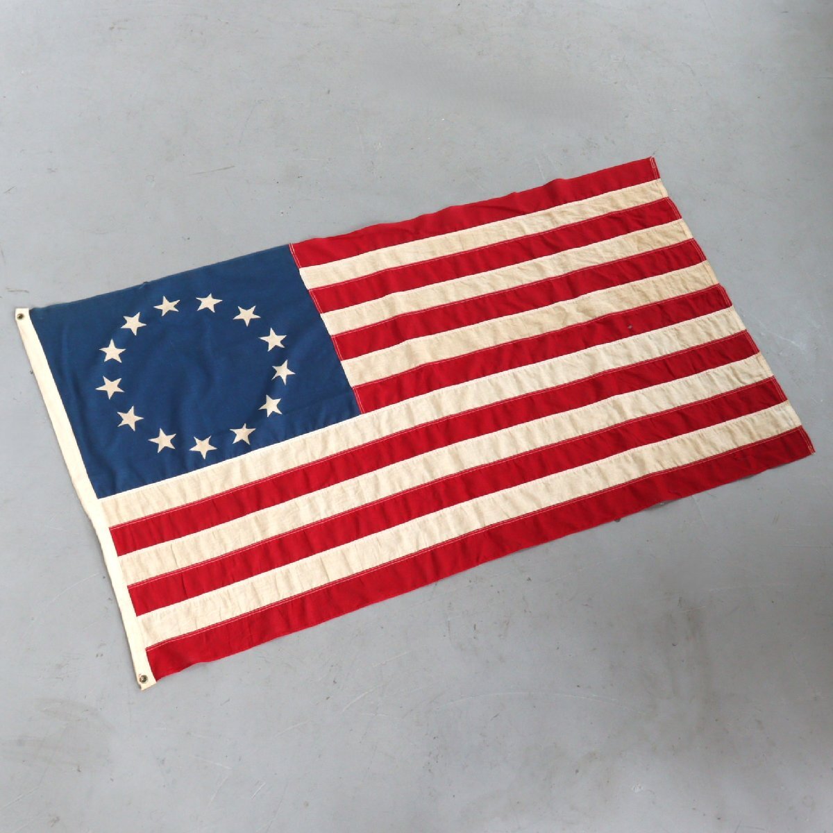 | 商品説明 explanation | アメリカ合衆国の初代の国旗、ベッツィー・ロス・フラッグです。 年代は不明ですが、かなり古いモノだと思われます。 星の数は独立時の13個で、赤白のストライプの数も13本です。 希少なアイテムを、ディスプレイ小物にいかがでしょうか。 |