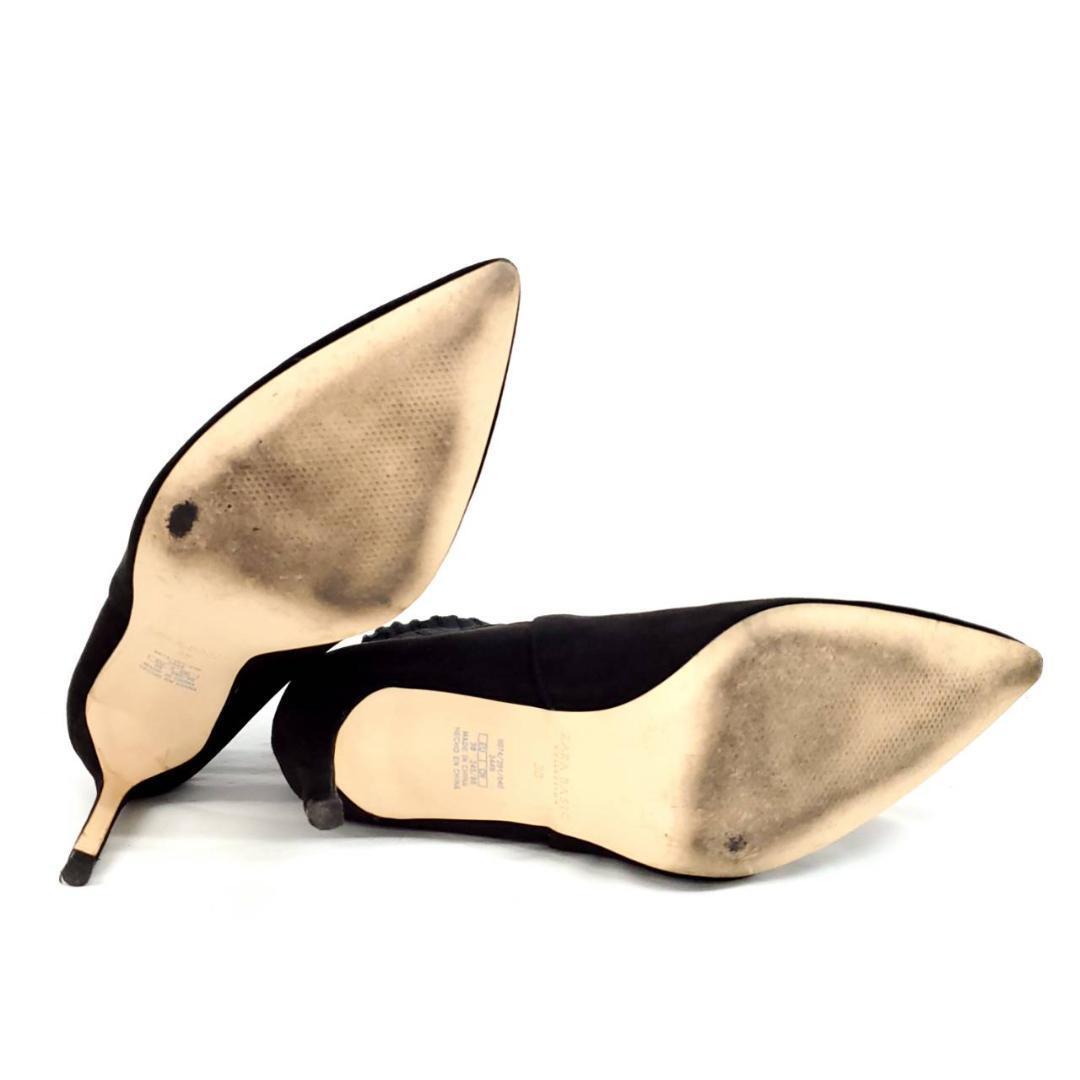 ポインテッドトゥで美脚見えし、ブラックカラーで合わせやすい一足です。