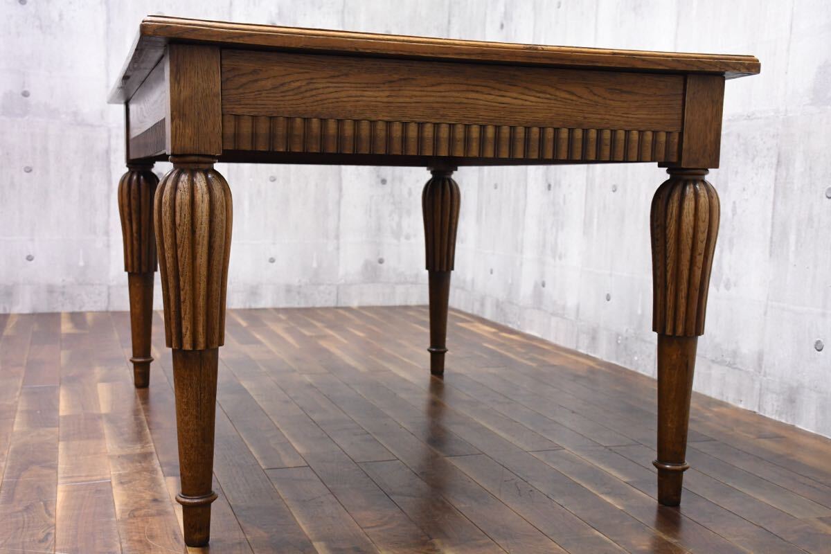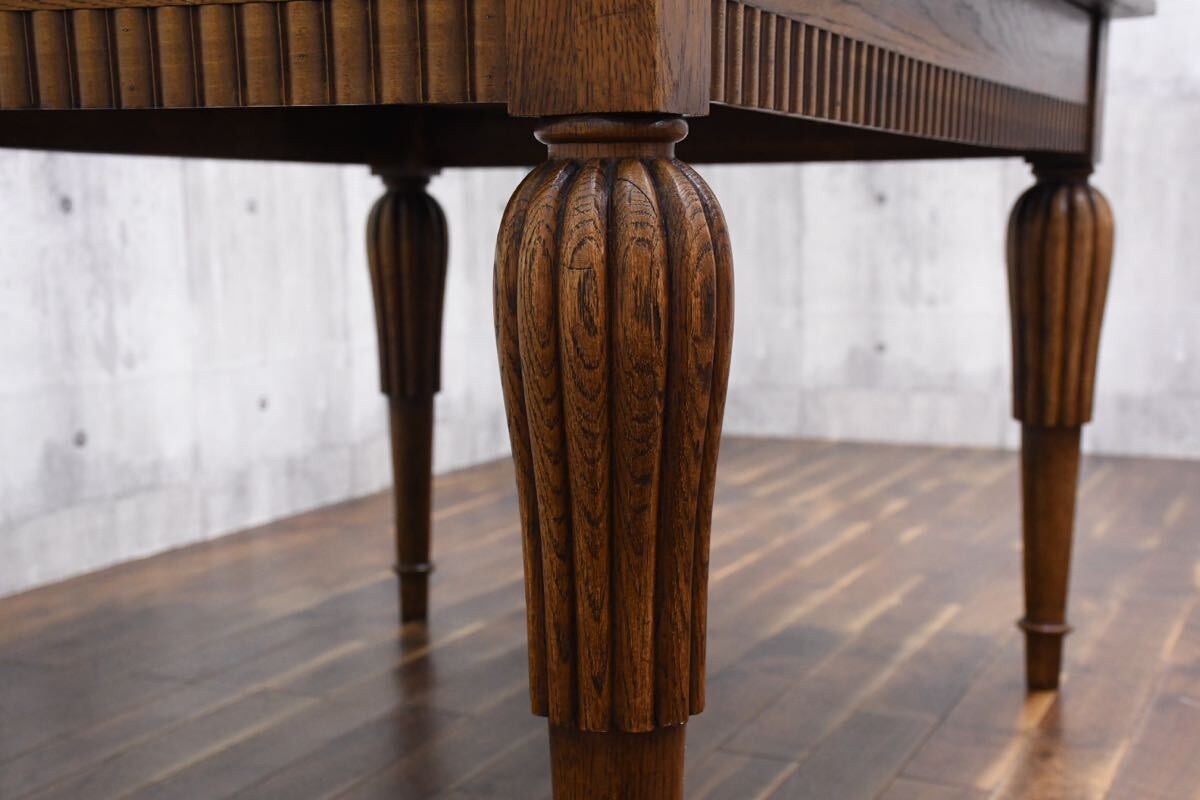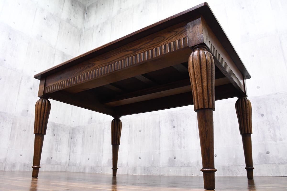 このテーブルは、自然をモチーフにした柔らかな装飾と職人の手仕事が調和した、アール・ヌーヴォー様式らしいダイニングテーブルです。