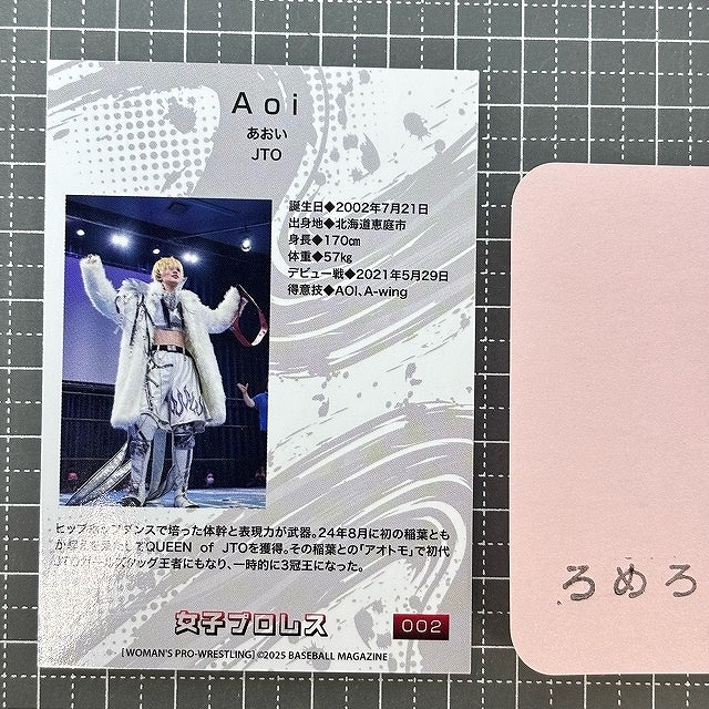 ◇BBM2025年♯002Aoi/アオイ/JTO/JUST TAP OUT【女子プロレストレーディングカード】