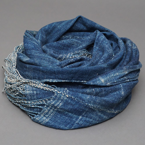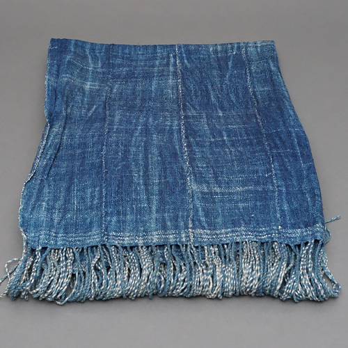 端にはフリンジがあしらわれており、古布ならではの使い込まれた風合いや小さなダメージも素材の味わいとして楽しめる一枚です。