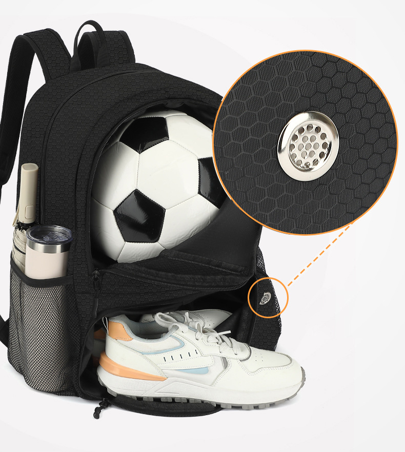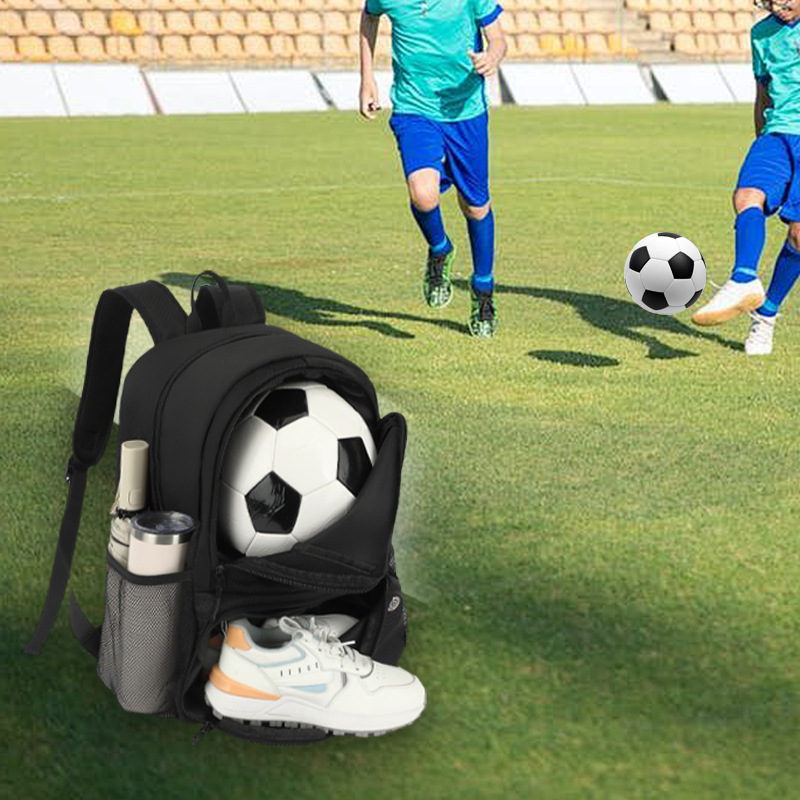 【多機能バスケリュック】ラージボールコンパートメント付きのバスケットボールリュックは、バスケットボール、サッカー、バレーボールの収納用に設計されており、若者の日常の練習や競争に最適です。