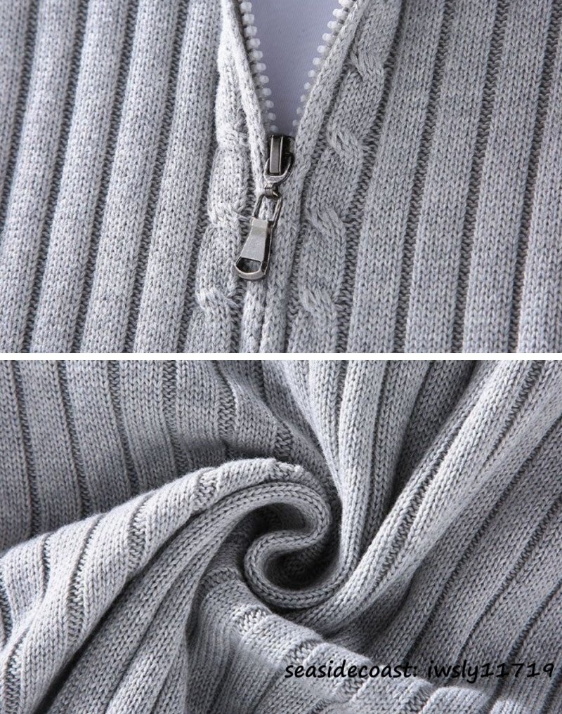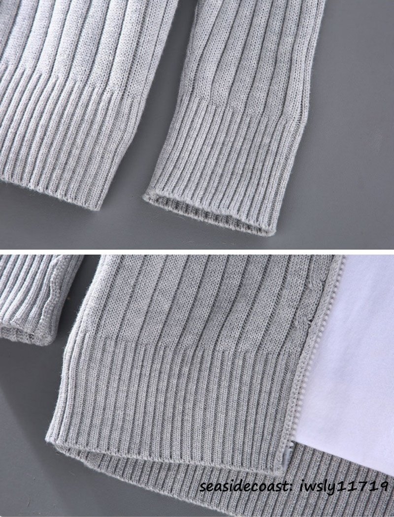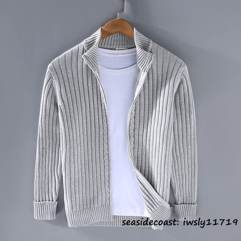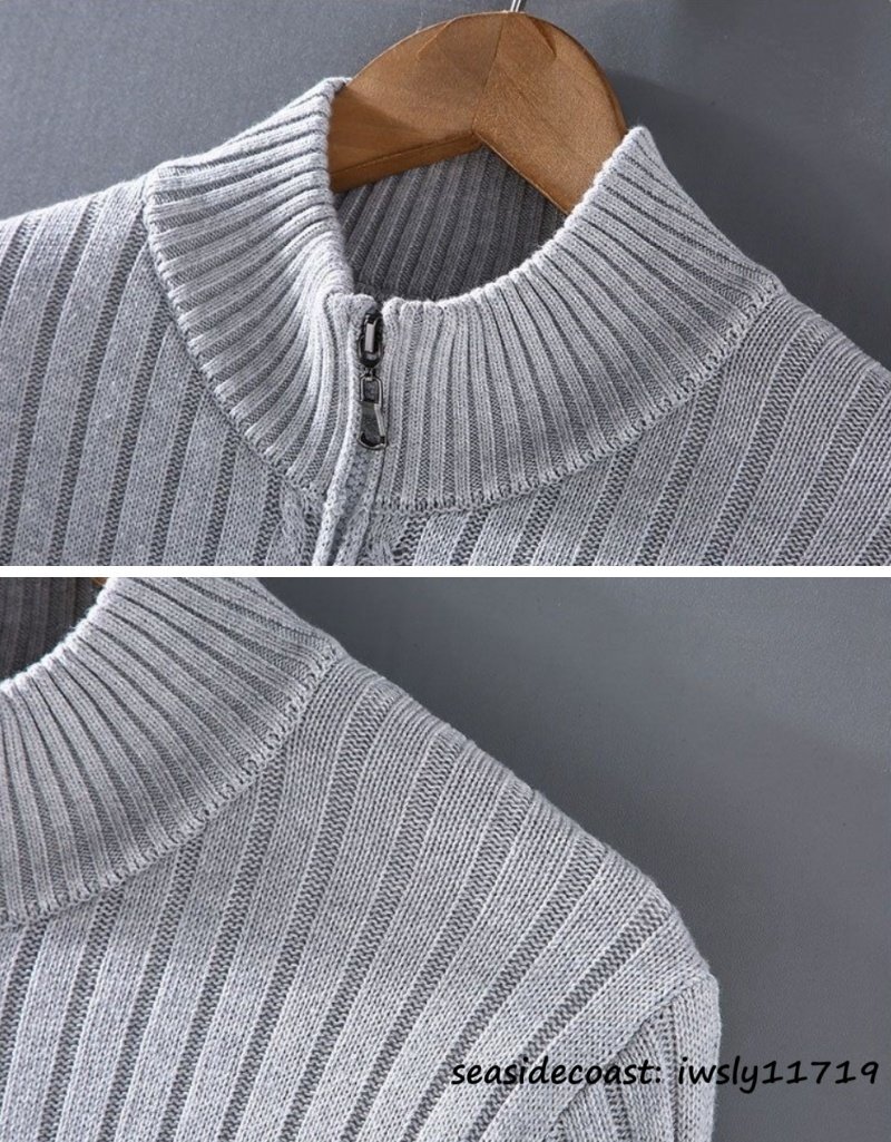 秋冬新作*ニット セーター メンズ 厚手 ニットジャケット トップス 長袖 アウター プルオーバー ハーフジップ コットン ライトグレー XL