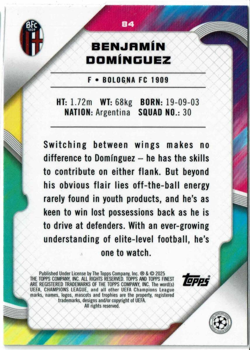 2024-25 Topps Finest UEFA Champions League #84 Benjamin Dominguez RC - Bologna FC ボローニャ