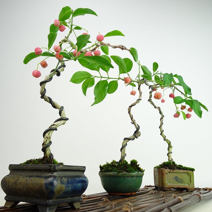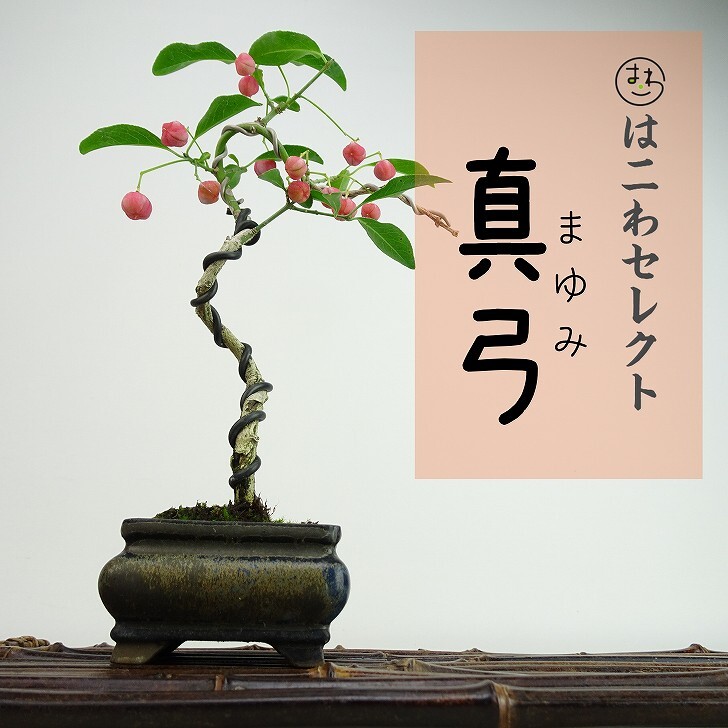 | ■植物ですので撮影時期や季節によって剪定などの手入れにより写真から変化がございます。撮影日をご確認のうえ、ご注文ください。 【真弓盆栽】 開花時期は晩春から初夏(5-6月)です。 花色は薄い緑色で、新しい梢の根本近くに四弁の小花がつきます。 |