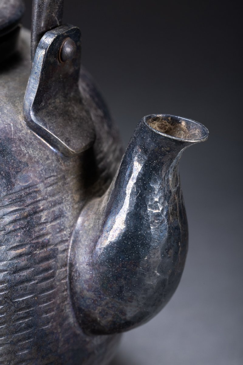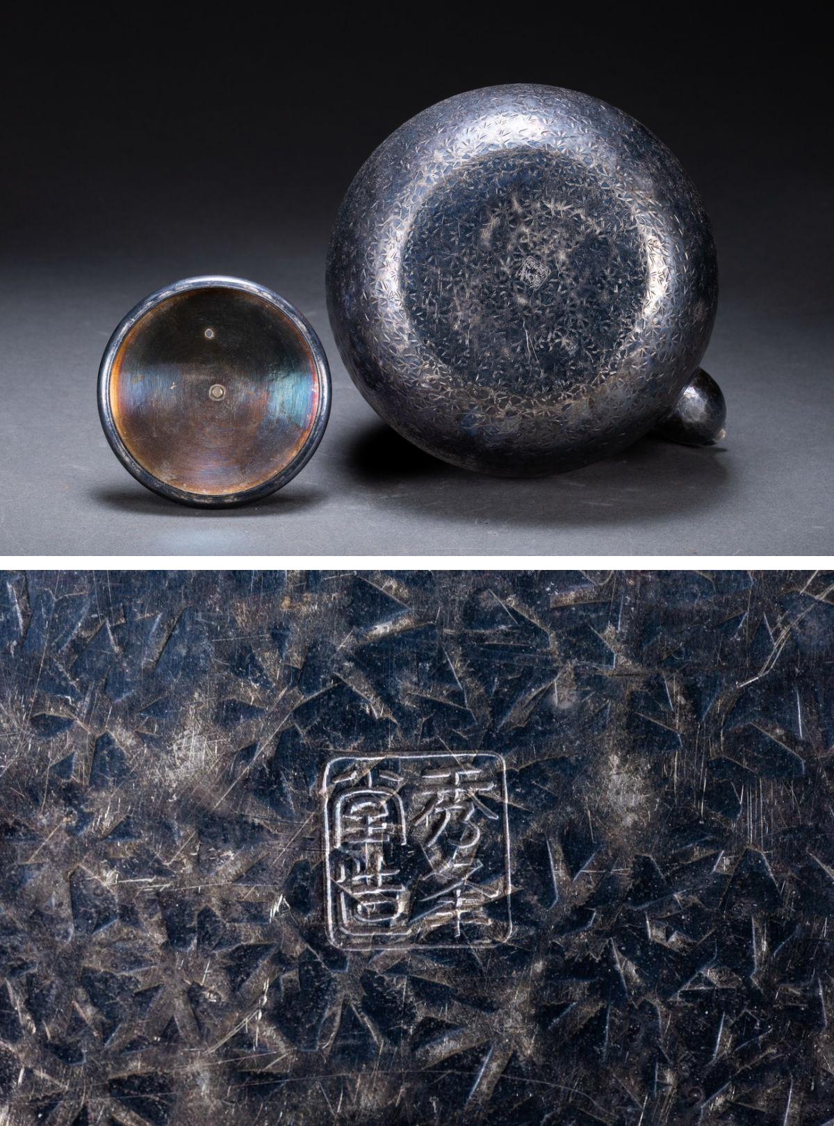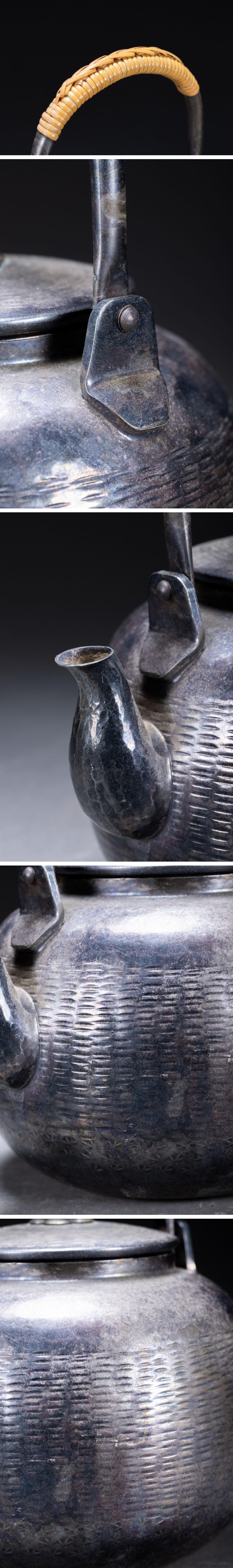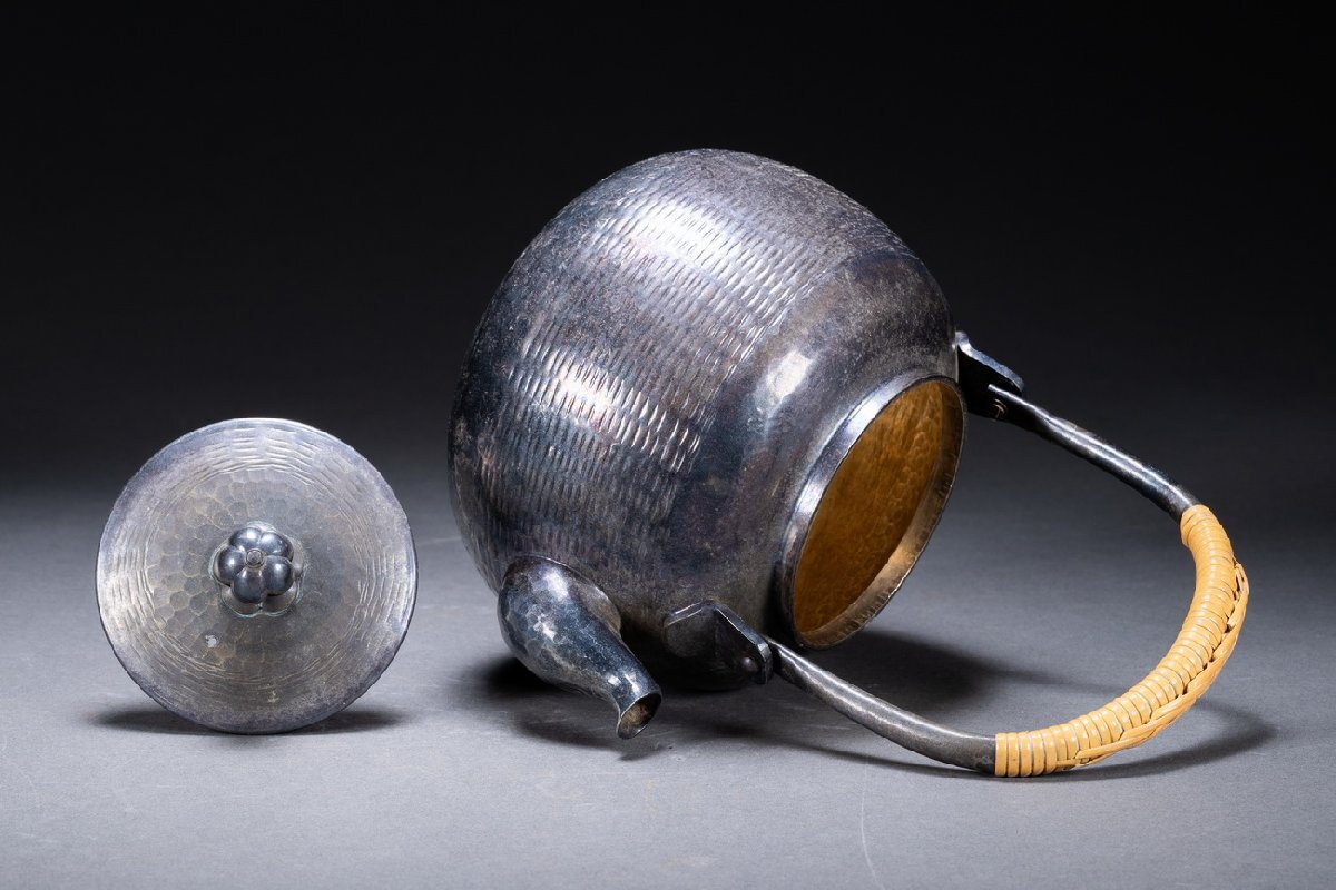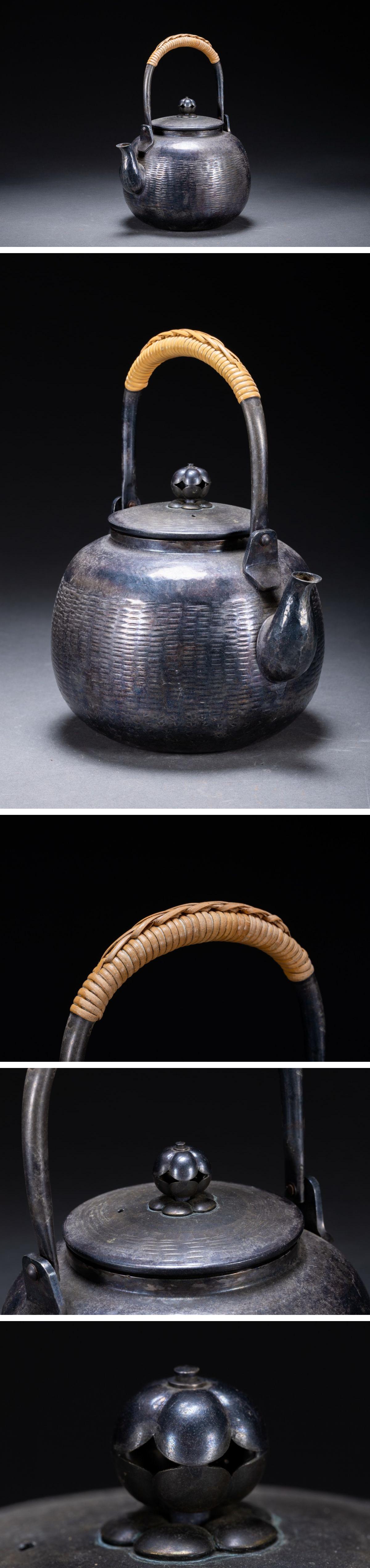 【雲錦】某有名オークション購入 時代物 秀峰堂造 銀メッキ急須 古茶煎道具 古置物 古美術 時代コレクション7L10-112S1