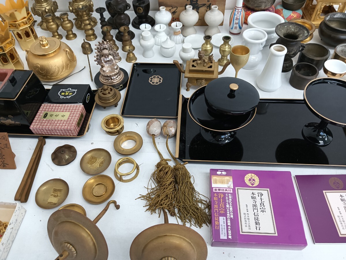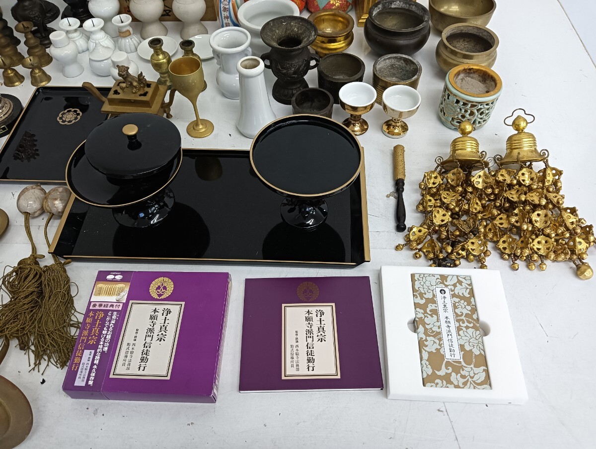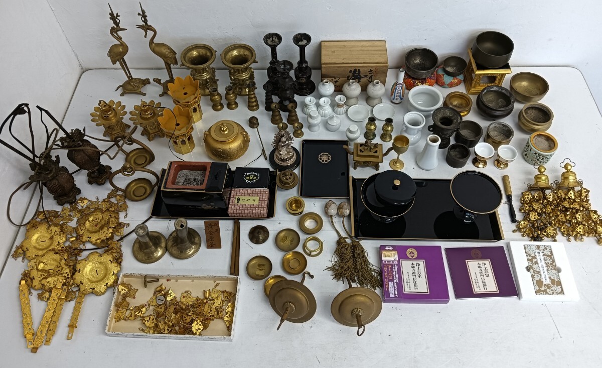 | ご覧いただきありがとうございます。 ご入札前に必ず下記の※※商品説明※※を最後まで ご一読をお願いします。 ■商品説明 ◆仏具おまとめ売り ◆ロウソク立て/おりん/花立て/焼香セット/鶴亀燭台/鳳凰の模様が施された金色の香炉他/仏飯器/その他いろいろ ◆骨董品 中古買取り品に付き現状渡しにてご検討お願いします。 「現状渡し」とは ・買い取ったそのままの状態で売ります ・修理、整備はしておりません ・動作確認済みの表記、または一部の動作確認が出来ている場合も含めて 出品時点では動作確認できていても中古品につき、 いつどのような不具合が起こるか予測できない為、ジャンク品扱いとして 動作保証は致しかねます。ご了承ください。 発送は佐川急便 140 サイズです。 配送料は佐川急便料金表をご参照ください。 注意事項 ※※※必ずご一読ください※※※ ■新品、未使用品の記載があっても一度人の手に渡った自宅保管品となります。 中古品オークションであることをご理解頂き、不安のある方はご入札をお控え下さい。 ■できる範囲で確認しておりますが、一度人の手に渡った中古品につき、 当方が認識していない付属品やパーツの欠品、仕様の違い、及びキズや破損個所、 動作不良等がある可能性もございますので、ご了承くださいますようお願い申し上げます ■中古品につき、動作確認、または簡易・一部の動作確認が出来ている場合も含めて 出品時点では動作確認できていてもいつどのような不具合が起こるか予測できない為、 動作保証は致しかねます。 ■配送における破損については配送業者へご連絡頂きますようお願いいたします。 ■当方専門知識が無い為、ご質問に正確にお答えできない場合がございます。 ■商品名や商品説明に間違いがある場合は必ず入札前に質問欄からご確認をお願いします。 ■付属品は画像の物がすべてです。(撮影台や背景などは含みません) ■疑問点は必ず入札前に質問欄からコメントしていただき、解消してからご入札ください。 解消されない場合はご入札をお控え下さい。 【お取引について】 値引き、即決、早期終了、入札の取消し、落札後のキャンセル、 配送方法の変更、入金期限延 長等交渉事には、一切応じられません。 ※※ ご入札は、十分にご検討の上、慎重に責任を持ってお願い致します。※※ 落札後、48時間以内のご連絡と、平日3日以内に、ご入金をお願い致します。 ご連絡またはご入金なき場合、お取引の意思が無いものと判断し、 落札者都合にて入札を取り消す場合がございます。 ※その際、ヤフーより自動的に、【非常に悪い】評価が付きます事をご了承ください。 また、いたずら防止のため、新規IDや総合評価の悪い方は 入札削除させて頂く場合がございます。新規IDの方はご入札前にご相談ください。 【発送について】 発送方法の変更はお受けできかねます。 ご入金確認の翌日から、平日(月~金曜日)4~7日前後で発送致します。 ご入金日当日、土 日 祝日及び、年末年始、GW等の長期休暇の時期の発送は、 原則致しておりません。 発送完了時には、【お問合せ番号】をご連絡をさせて頂きます。 梱包の都合上、発送通知だけ先にお知らせする場合がございます。 お問い合わせ番号が反映されない場合は2~3日経ってから再度ご確認をお願いします。 他の商品と同梱が可能な場合は、当日落札分かつ、まとめて取引のみ対応致します。 なお、易損品の場合や、同梱が困難な場合、落札日の異なる場合は対応出来ません。 梱包材は、リサイクル品・古新聞等を使用しております。 梱包サイズは商品サイズ×1.3で計算しております。あくまで概算になりますので 大きさが前後する場合がございます。 破損が無いことを最優先として、できるだけ適正なサイズ計測をしておりますが、 梱包の都合上お知らせしたサイズより小さい場合も稀にございます。 その際は送料の差額のご返金はできませんのであらかじめご了承ください。 【返品について】 ◆商品到着から3日以内に取引メッセージよりご連絡をお願いいたします。 (評価コメント・電話では受付できません) 3日を過ぎた場合は一切対応いたしかねますので、到着後は速やかに 内容の確認をお願いいたします。 ◆落札者の操作ミス、勘違いや見解の相違(商品の美観など)については返品に応じかねます。 【お願い】 商品到着後、すぐに商品のご確認の上、破損がなければ必ず☆受取連絡☆をお願いします。 | |||