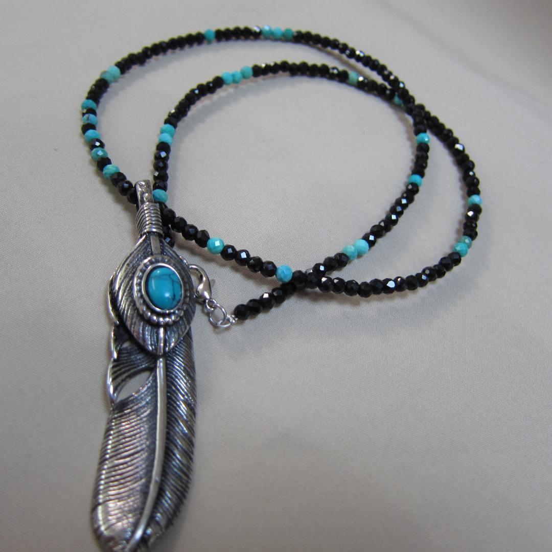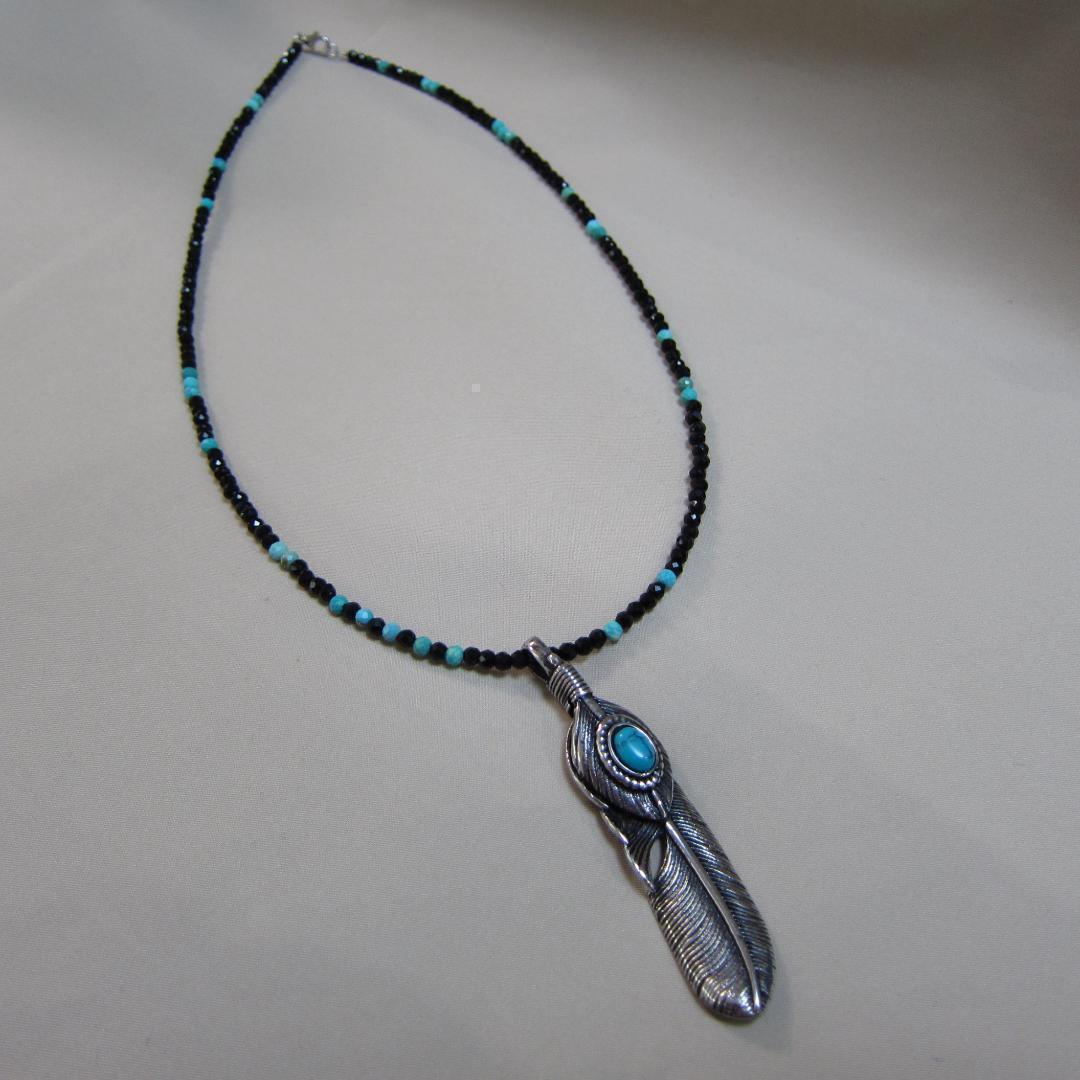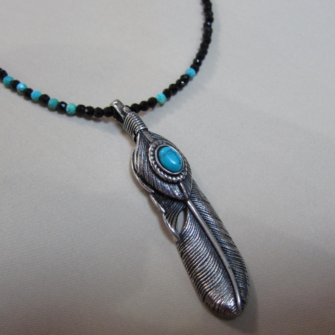 ターコイズ(人工ストーン)付きのフェザーがいい雰囲気です!