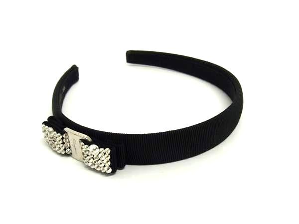 ■新品同様■ Salvatore Ferragamo フェラガモ ヴァラリボン キャンバス カチューシャ ヘアアクセサリー ブラック系FP6363