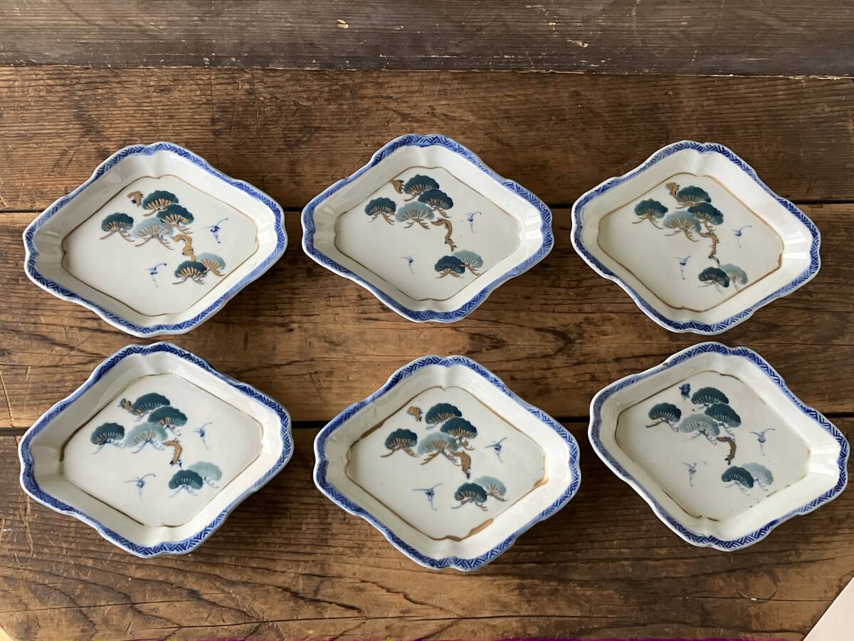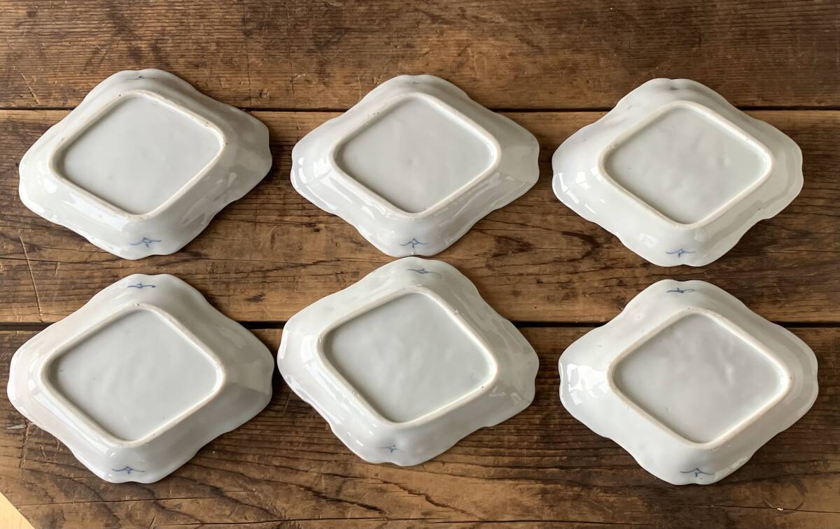 【OAN】 時代物 印判 形皿 6枚セット 骨董 古美術 古道具 民藝 古民藝 茶道具 懐石 古玩 古伊万里 伊万里 瀬戸 九谷 I25112