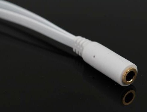 | オーディオ分配ケーブル 3.5mm 4極(メス)-3.5mmステレオミニ(オス)+マイク入力(オス) ホワイト 19cm |