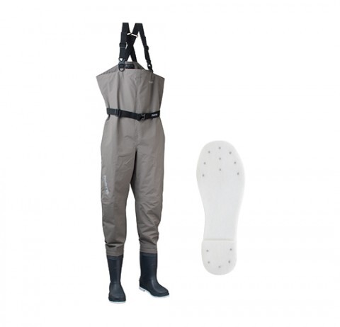 ・蒸れの少ない透湿素材(ブレスシェード3レイヤー)の本体に軽量なPVCブーツを組み合わせたウェーダー。