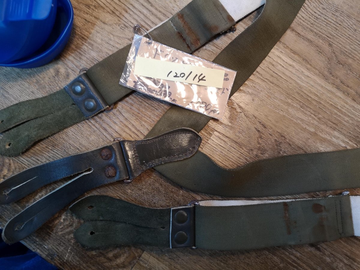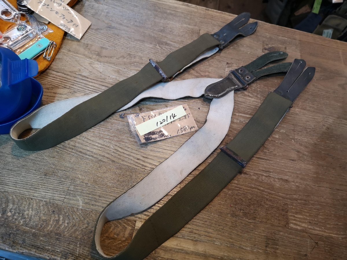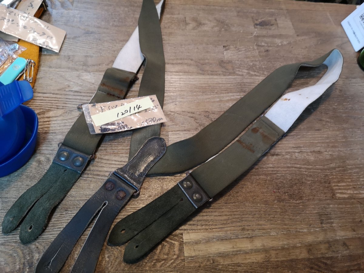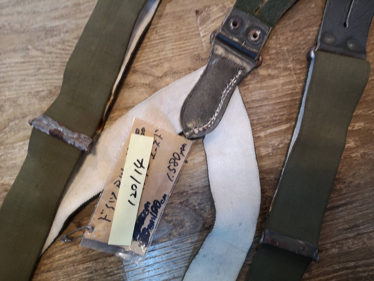 ドイツBW放出のODサスペンダー。 サイズ100(刻印が不鮮明なものは実測)でベルト幅は3.5センチ程度、ラバーサスペンダーですので伸びますが最長サイズは静止状態でボタンホールの間が100センチ程度で基本的に女性用サイズです。若干錆ヨゴレなどあります。 クロネコネコポス便200円でお送りいたします、落札価格にプラスでお願いいたします。服飾小物