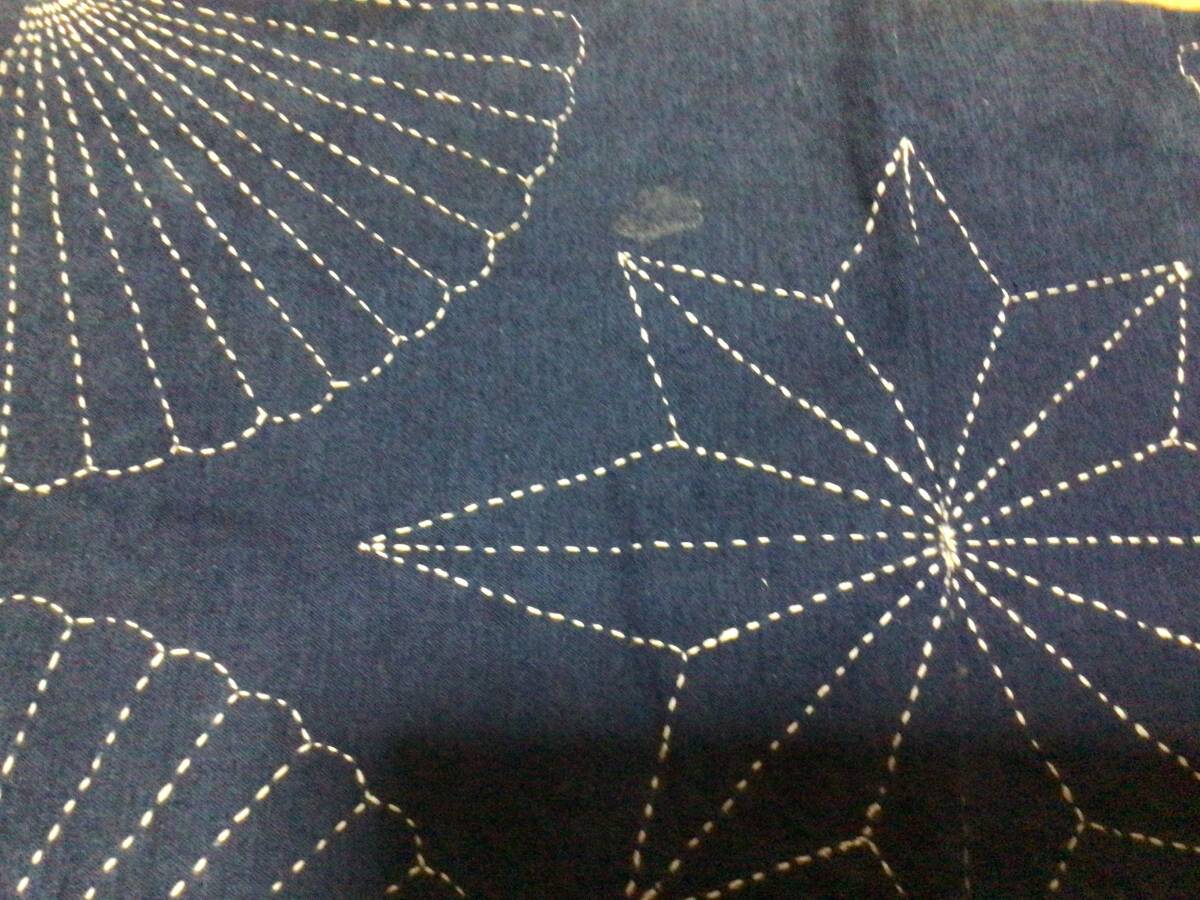 布巾ー31×35センチ、ランチョンマットー31×52センチ、ポーチ-17×20センチー2枚あり、全部木綿地に刺し子です。傷みはありませんが薄よごれがあります。