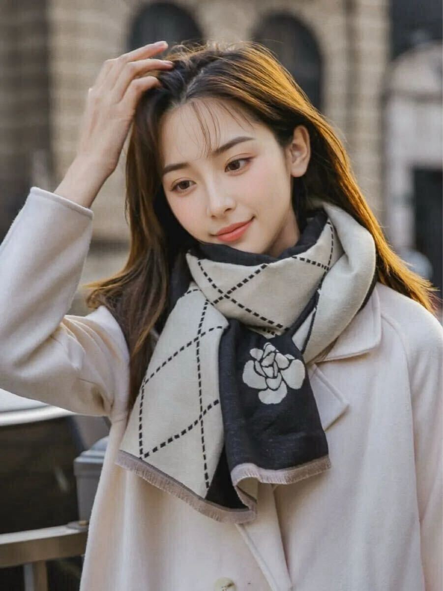 洋服を選ばず首元に巻くだけで高見えするアイテムです^_^
