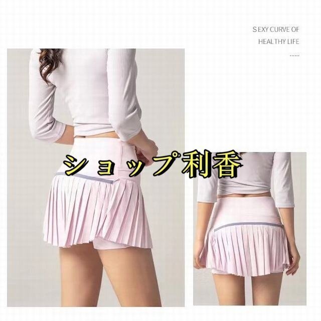 【特徴】インナーパンツと一体型のデザインでパンチラされる心配がない、アクティブな動作でも安心です。サイドにポケットが付いていてスマホなど簡単収納ができるので、とても便利です。