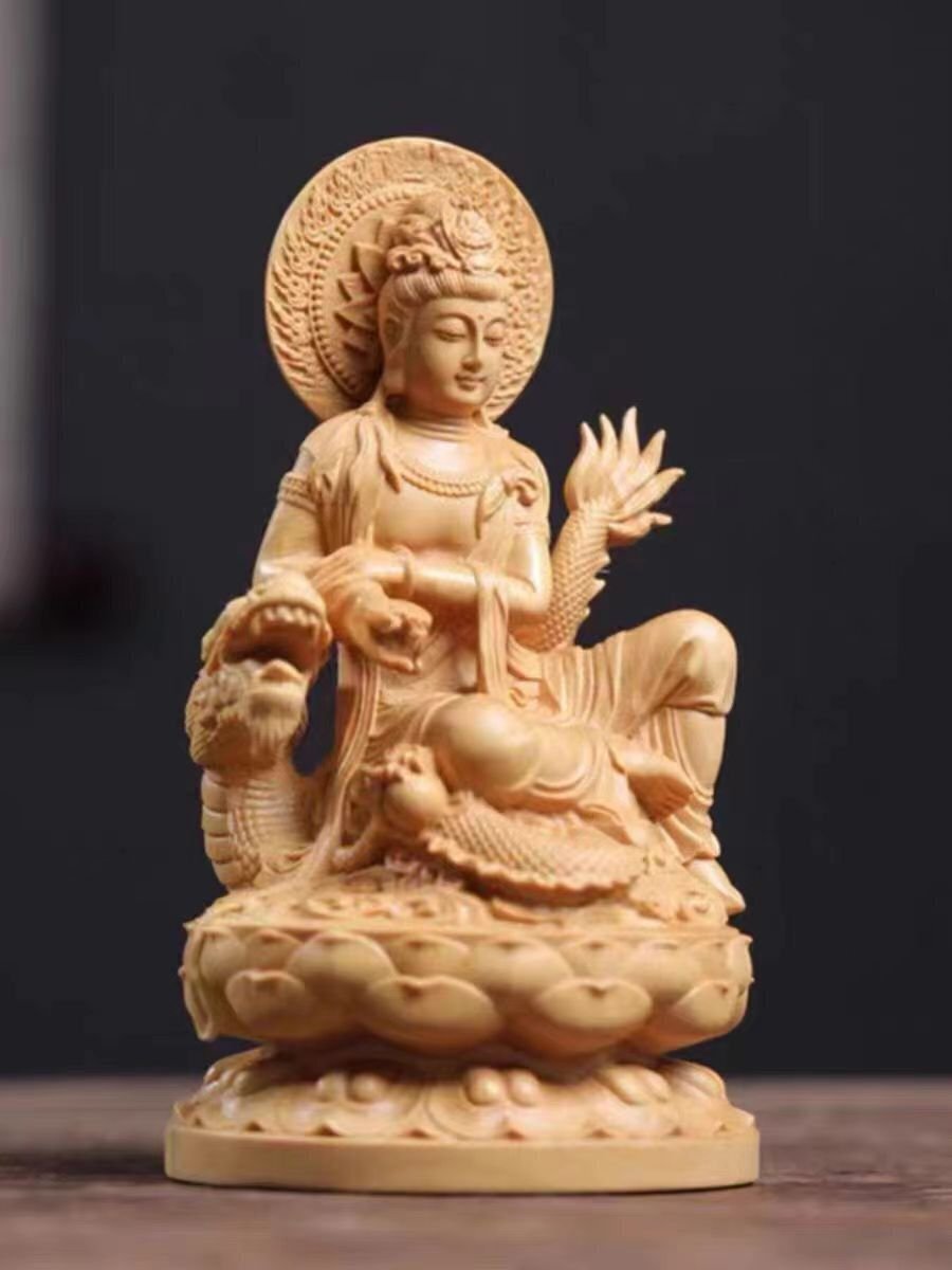 新入荷★至極の木工 木彫 御龍観音像 ッゲ 彫刻工芸品 高級天然 ツゲ木彫り 風水グッズ 贈り物