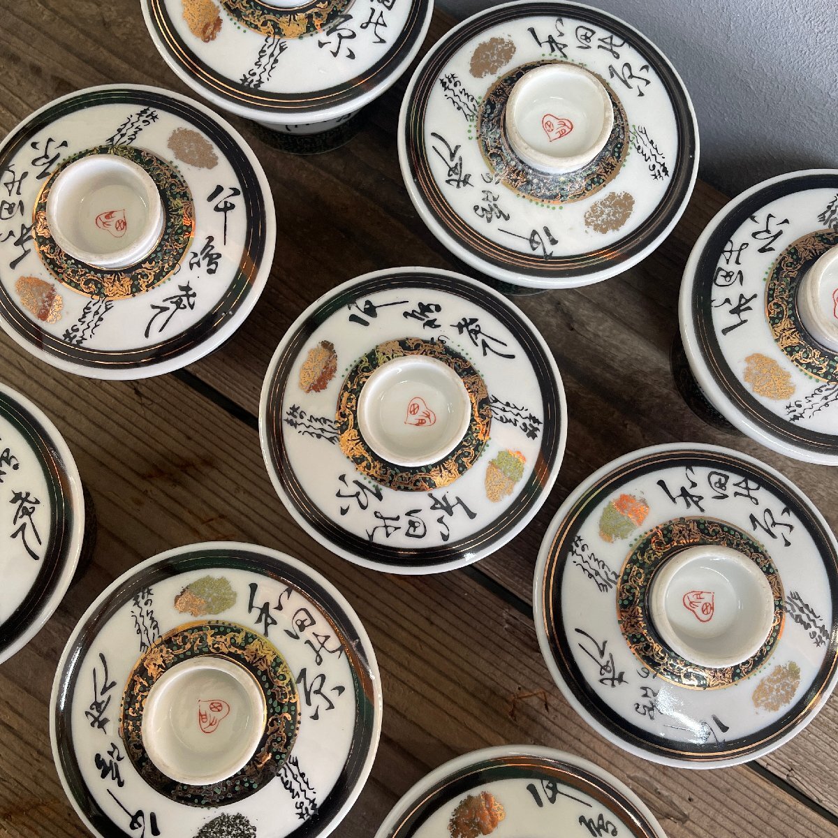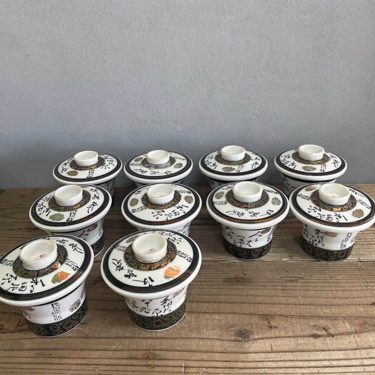 中古 茶碗蒸し 陶器 お祝い 蓋付 レトロ陶器 10客
