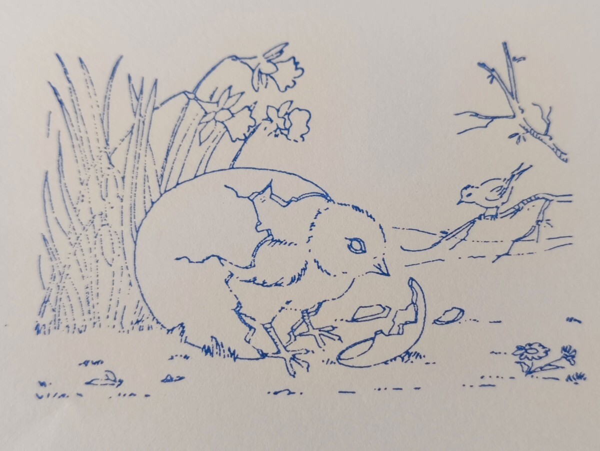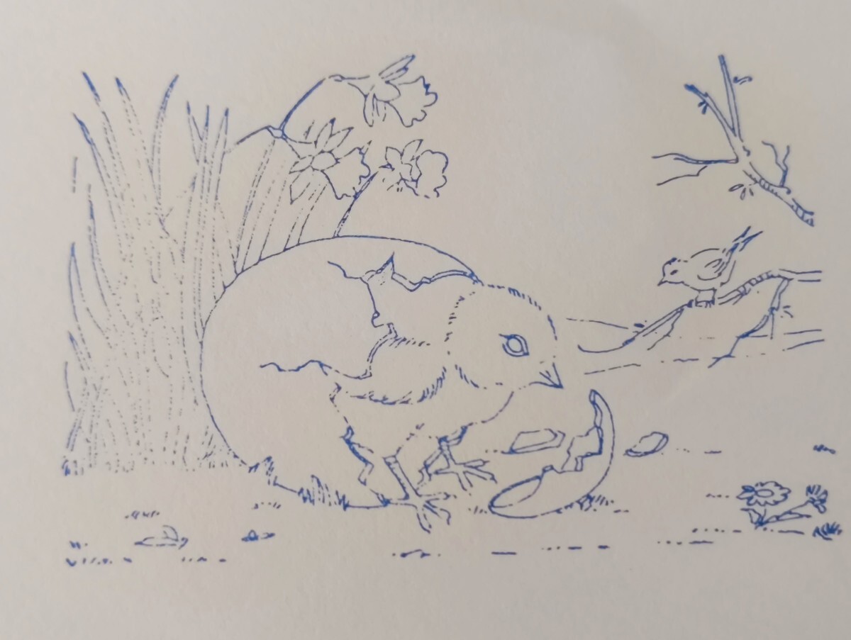 左半分ぼやける イースター 雛 孵化 小鳥 雀 フランス アンティーク 子供 スタンプ ヴィンテージ ハンコ イラスト 素材 バード 木の枝 卵