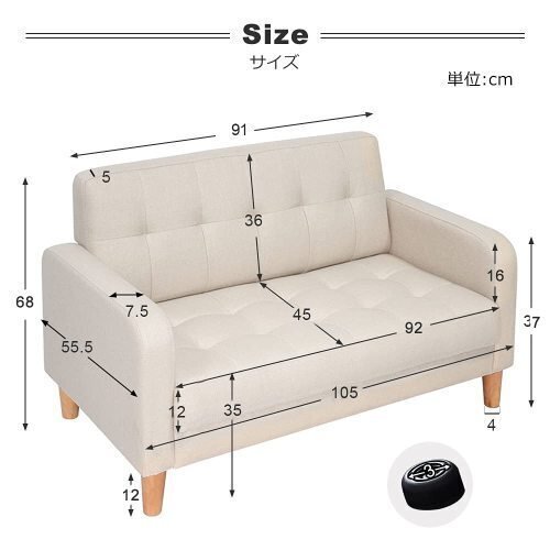 ソファー 二人がけソファー 2人掛け 幅105cm高さ12cmリビングソファ 肘付き ロボット掃除機も通れる かんたん組立 1人用にも おしゃれ 01