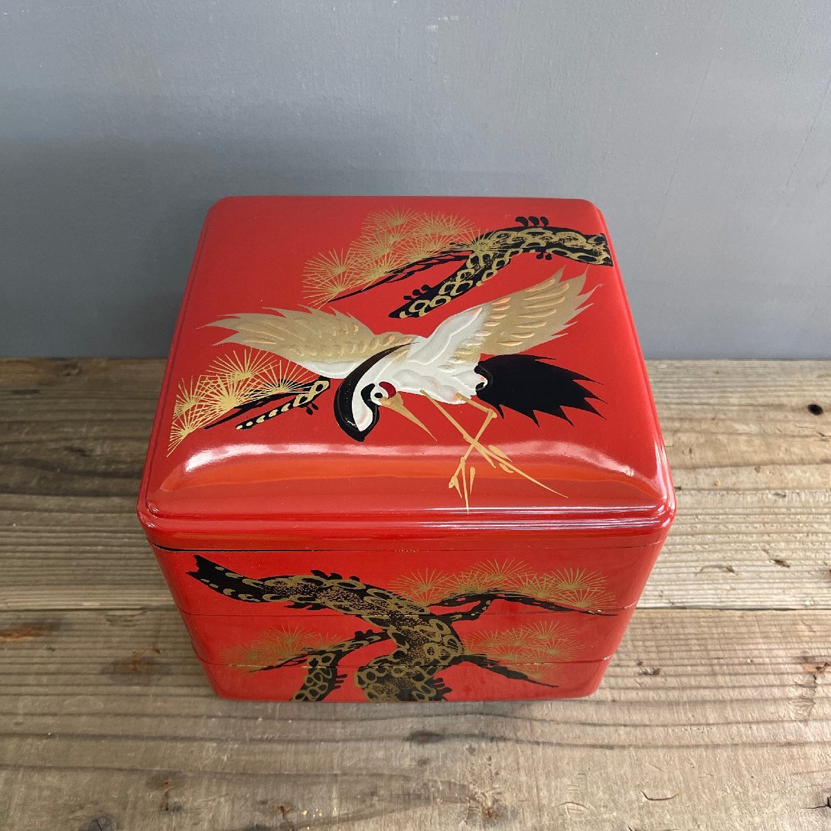 3段重箱 お祝い 鶴 松 朱色 大正時代