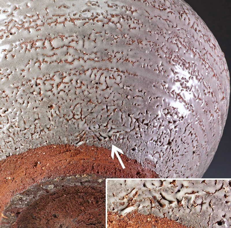 唐津の土味と素朴な絵付けが魅力的な作品です。中川自然坊窯の唐津焼は、唐津の土をはじめ厳選された素材を使い、粘土作りから窯焚きまで完全に手作業で作られます。自然の力を取り入れた陶器に同じものは二つとありません。 見えづらいですが矢印部分に彫り銘あります。 ★商品は中川自然坊の作品である事を保証致します。 |