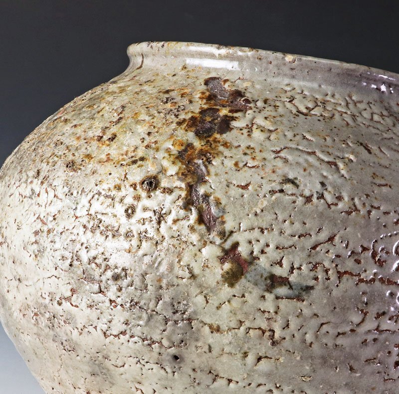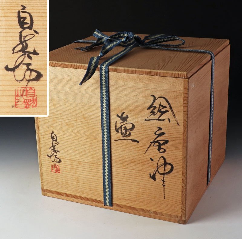 【中川自然坊】 24歳の頃に勤めていた会社の上司に進められて陶芸家に転身、3年間唐津鏡山窯井上東也の下で修行。その後、82年に割竹式登窯築窯(自然坊窯)を築いて独立。 以降、85年渋谷黒田陶苑、同年小田急百貨店など個展を中心にとした制作発表を行う。 作品では絵唐津、斑唐津、朝鮮唐津、刷毛目など伝統的な技法を尊重する中で約束事にこだわらない自由な作陶を展開し主に茶陶を中心に製陶する。 2000年には奥高麗の再現に成功し益々の期待が集まる作家として注目される。 |
