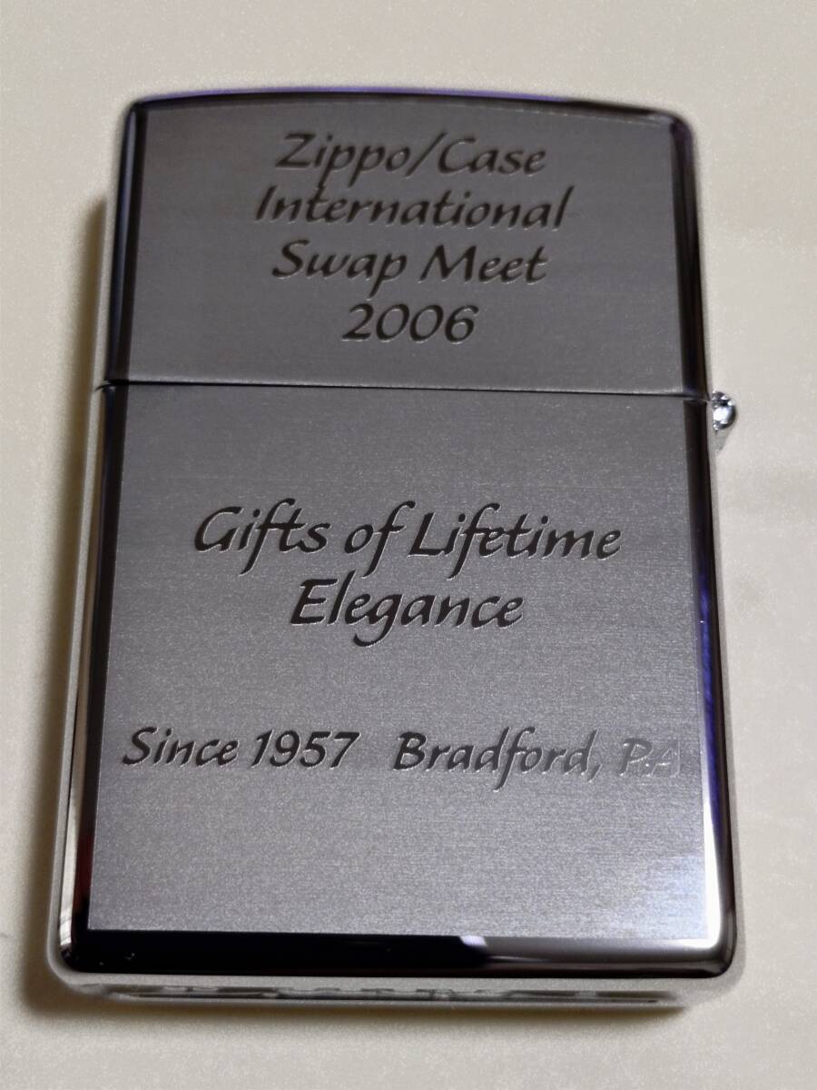 裏面、ダークアイボリーで、Swap Meet 2006 他、文字のプリント加工のZIPPOです。