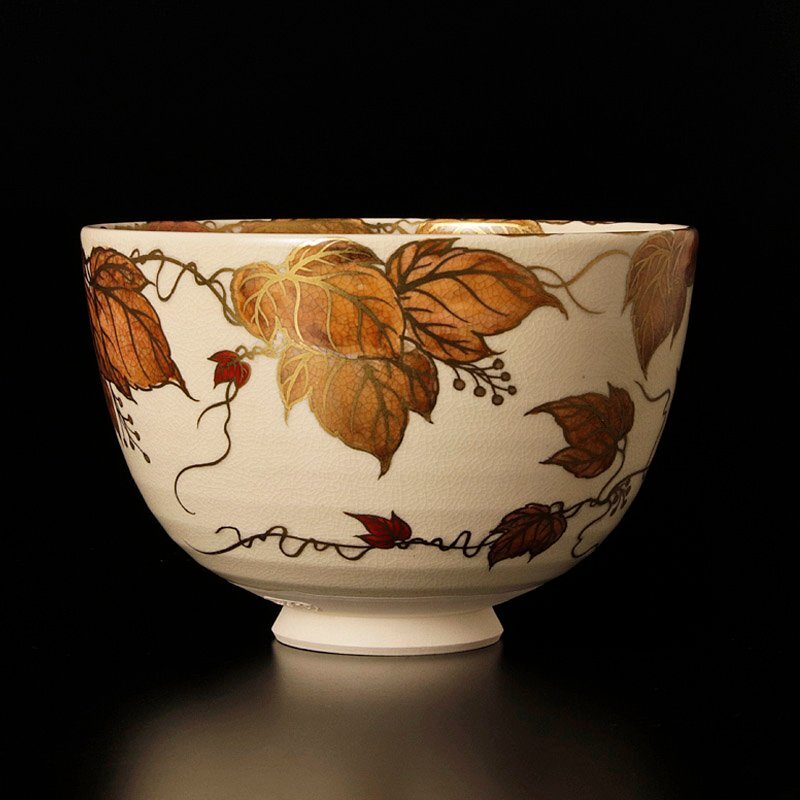 | 【古美味】清閑寺窯 杉田祥平造 色絵蔦画茶碗 茶道具 保証品 |