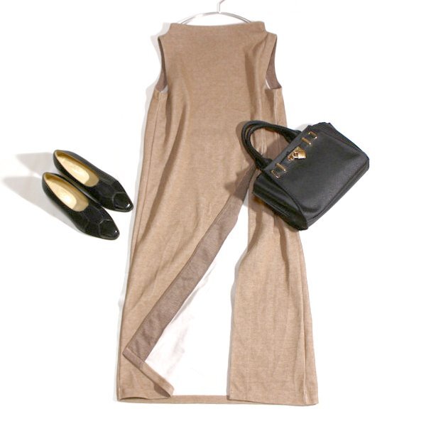 大きなスリットの入った、大人可愛いニット・チュニックワンピースです。