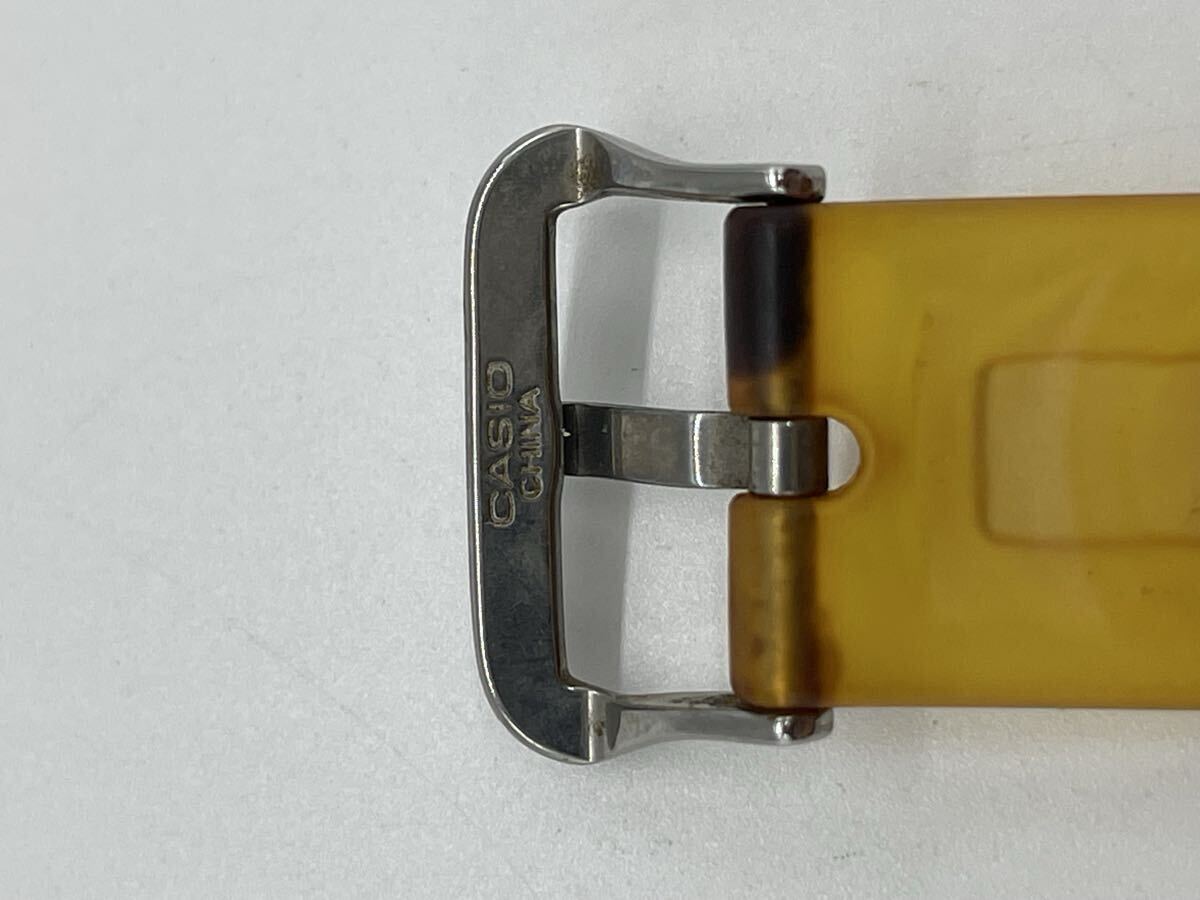 ベルトやバックルにCASIO刻印あり。裏蓋には「MADE IN THAILAND」の刻印が確認できます。