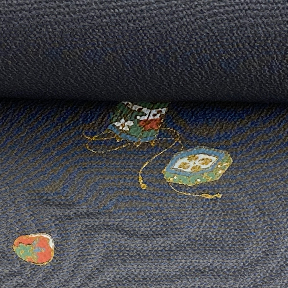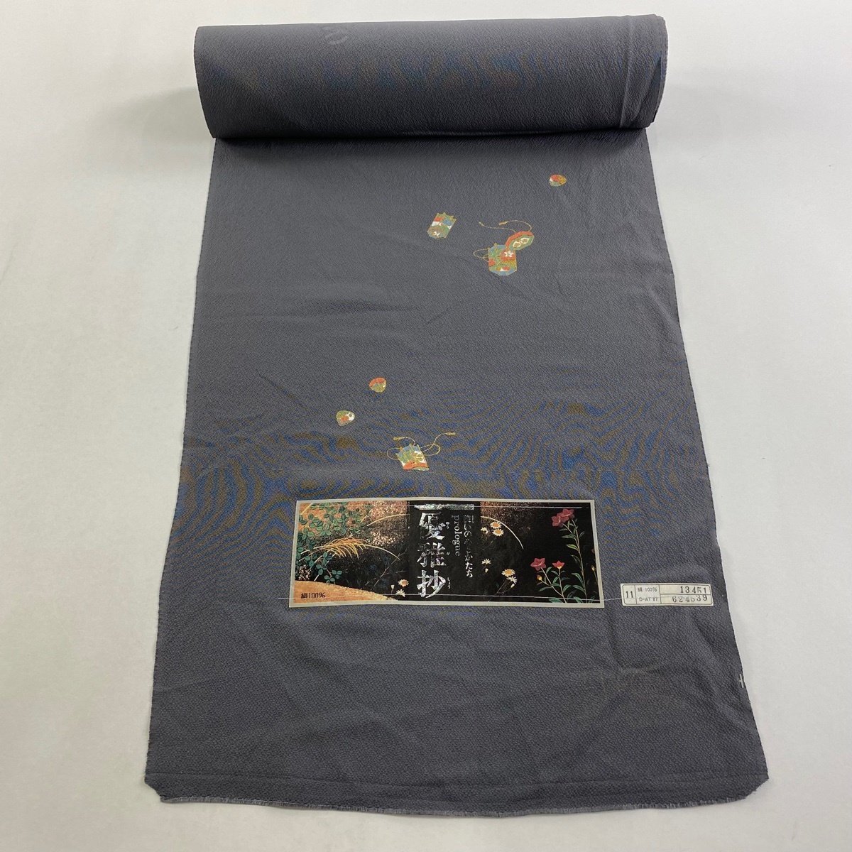 | 反物 秀品 小紋 貝桶 貝合わせ 金彩 縮緬 灰色 正絹 【中古】 |