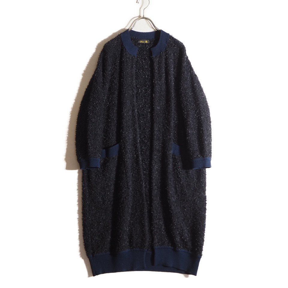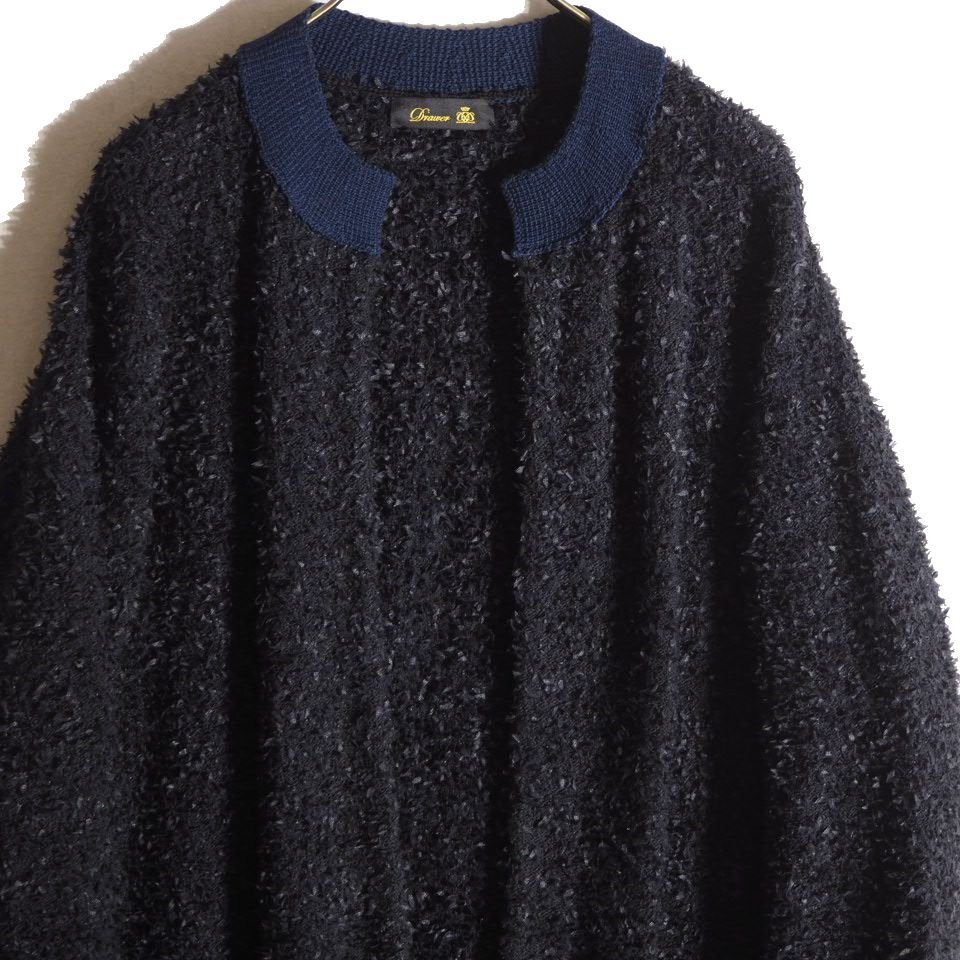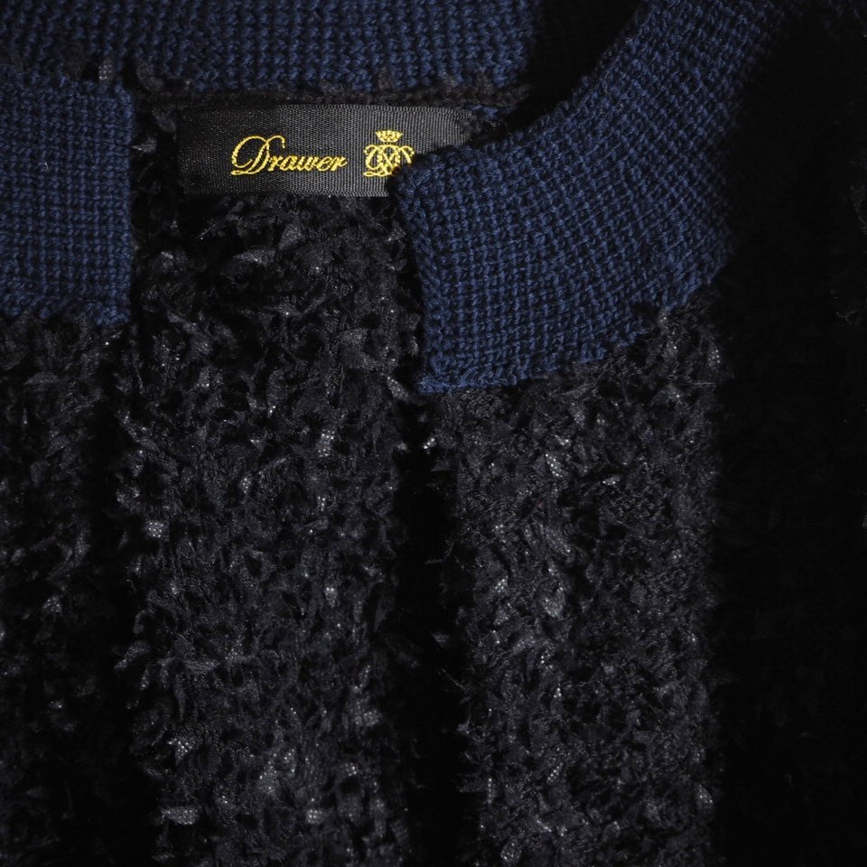 P4857H2 ▼Drawer ドゥロワー▼ 7Gファンシーヤーン ロングカーディガン ブラック / 6515-199-0510 ロングニット ガウン 黒 紺 春秋