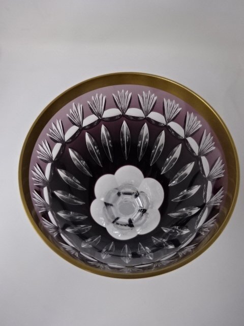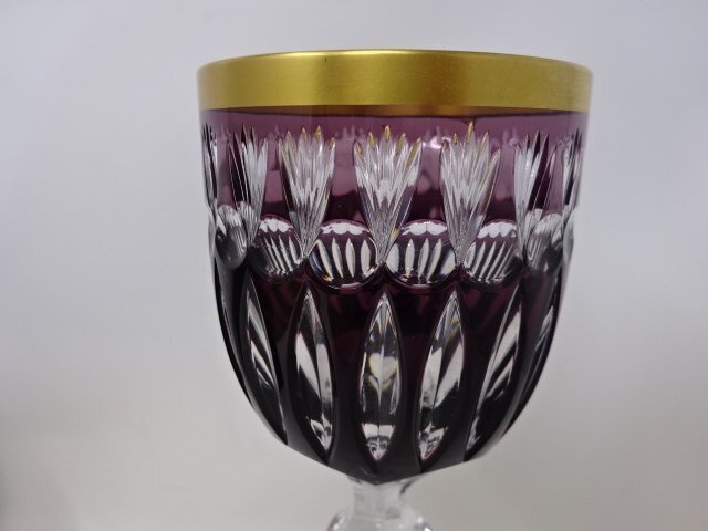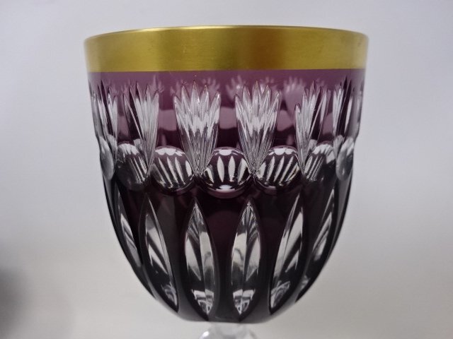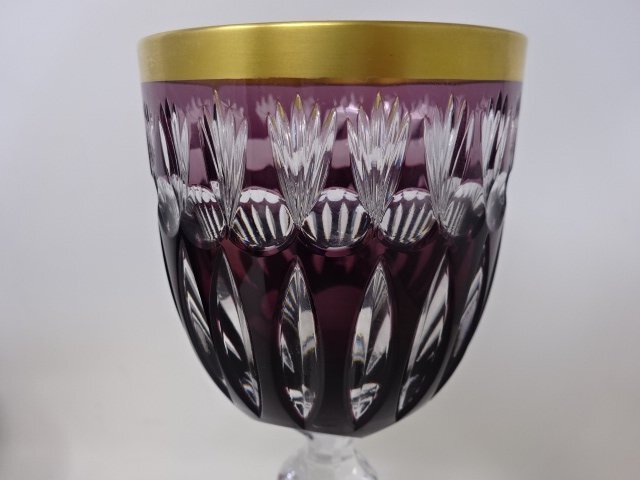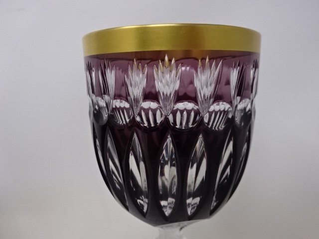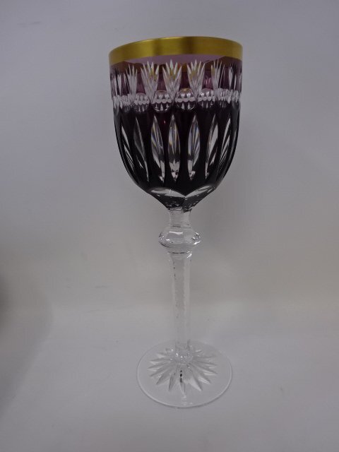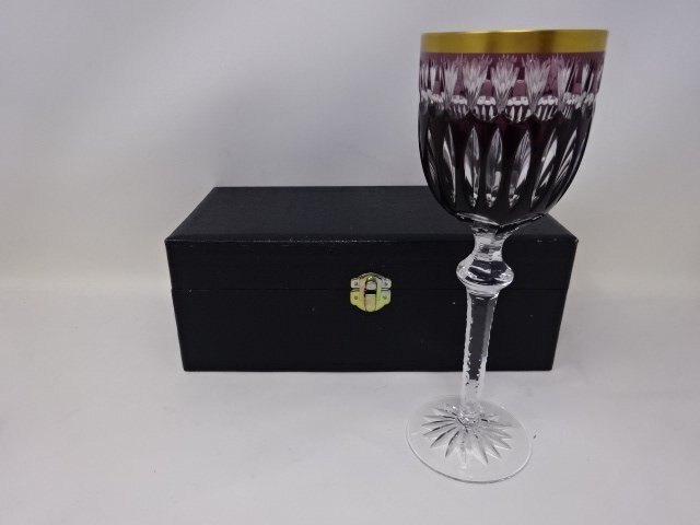 ◆クリスタルカットグラス ワイングラス レッド系 箱付き 中古◆4830