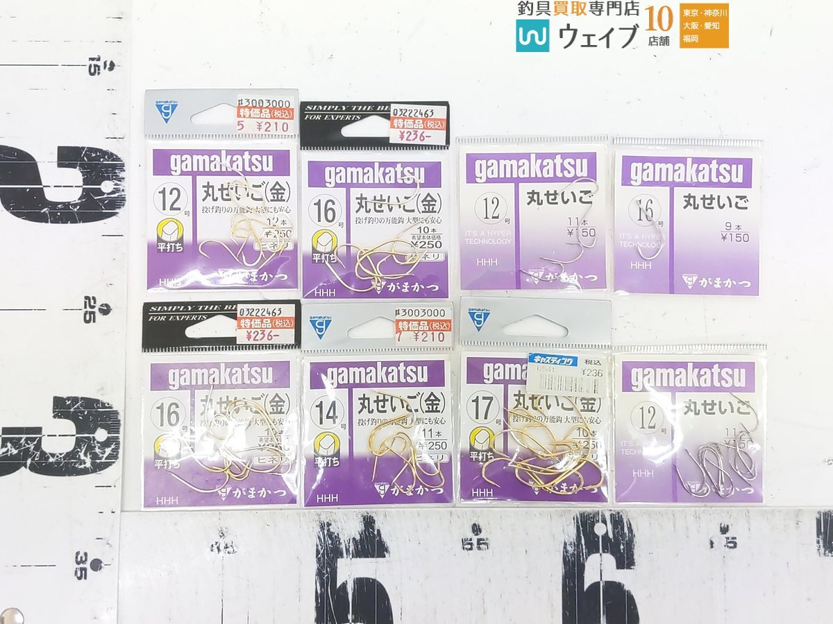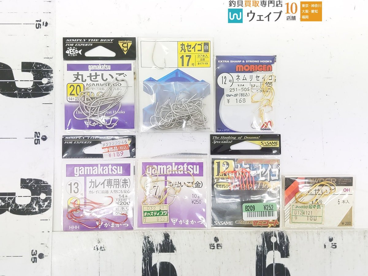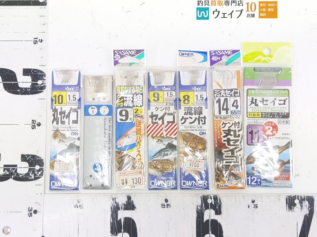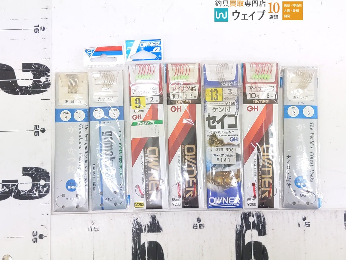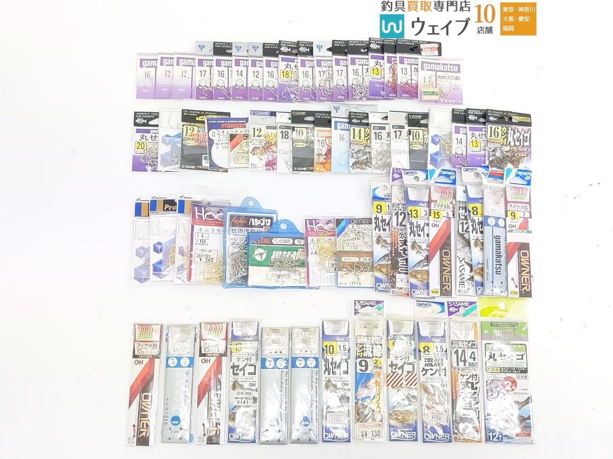 | 商品名 | がまかつ 丸せいご 金・ススキ・根魚王、オーナーばり 流線ケン付、ささめ針 セイゴ鈎 他 計64点セット |