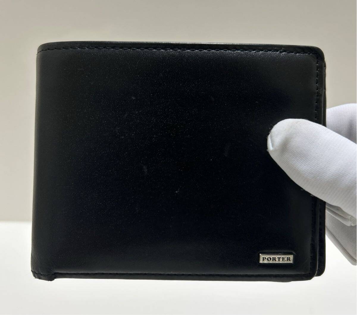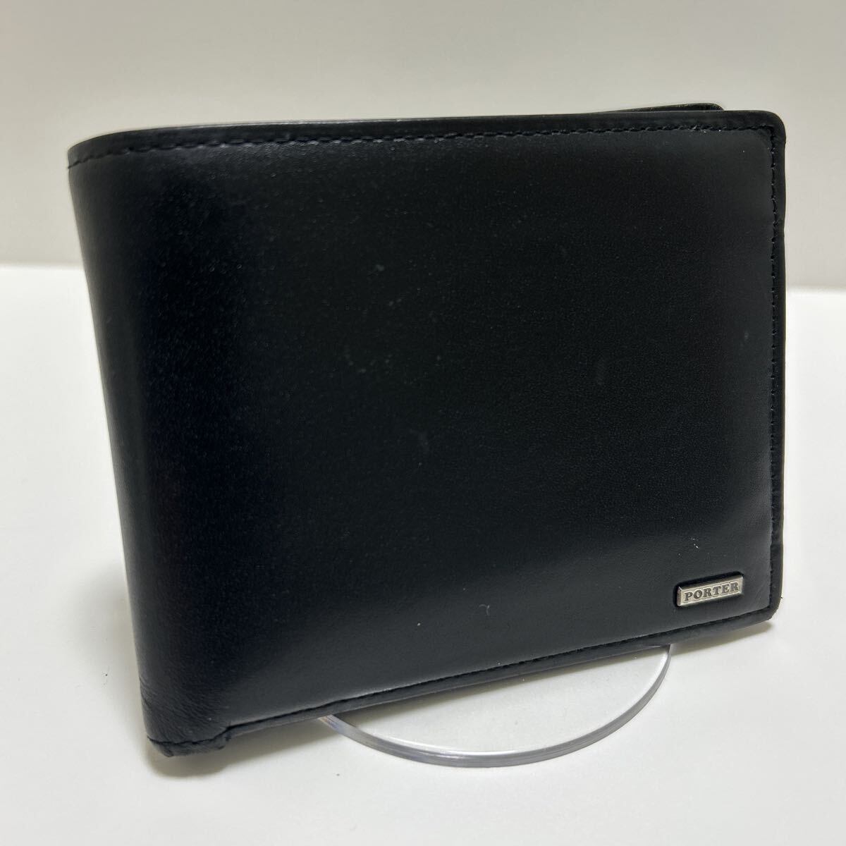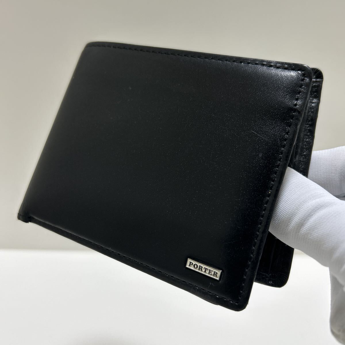 ◆PORTER ポーター SHEEN シーン コンパクト 折り財布 110-02920 ブラック◆ 牛革 ロゴプレート 札入れ×2 日本製【送料無料】1105