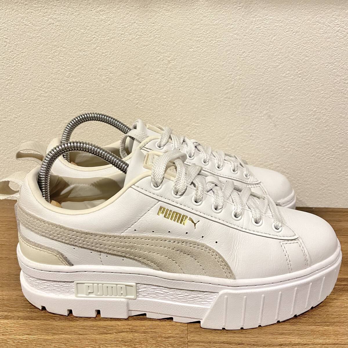 PUMA LEATHER MAYZE WNS プーマ レザー メイズ ホワイトベージュ 381983-13 レディース ローカットスニーカー カジュアル 24cm