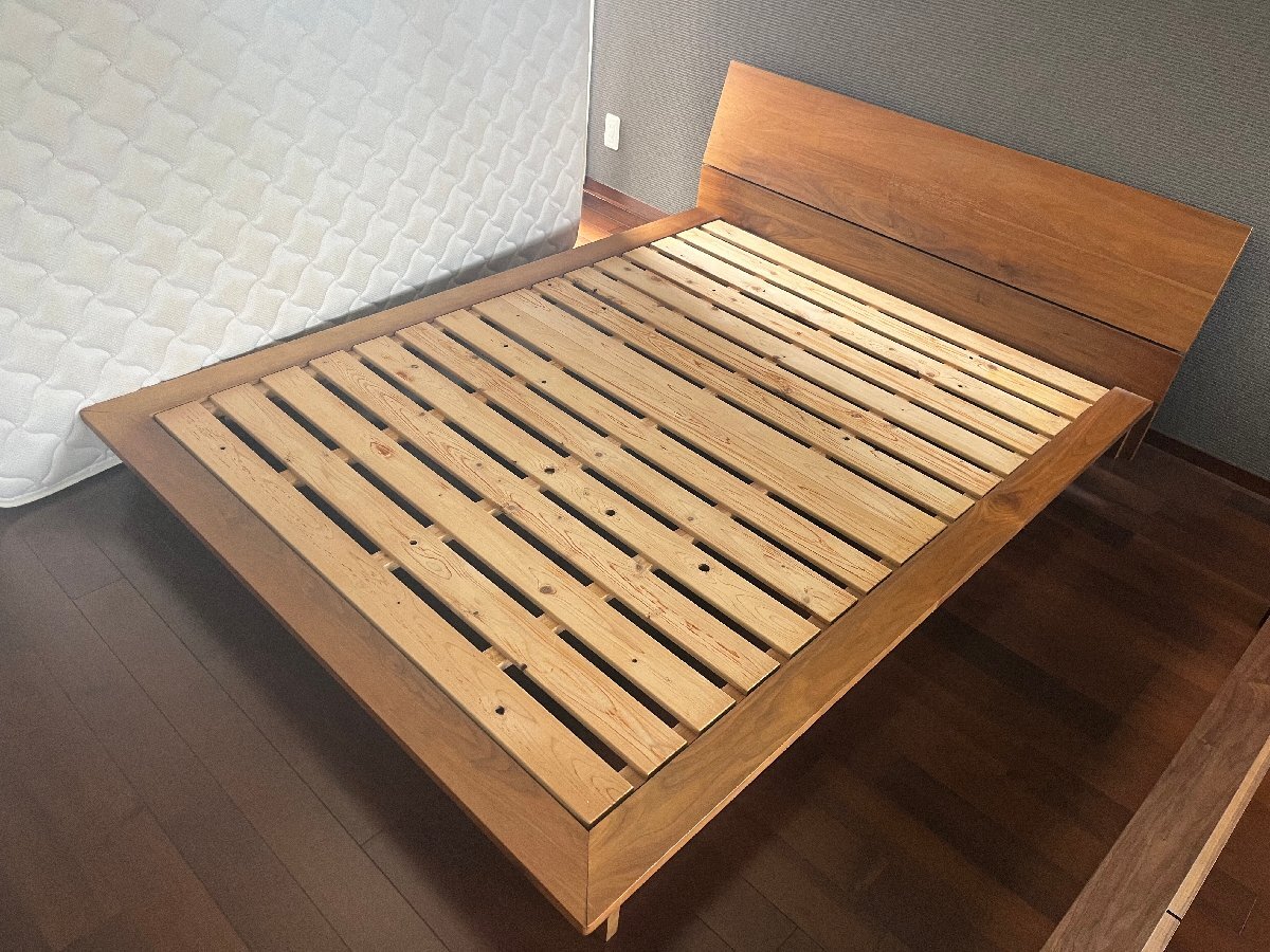 状態説明 伊藤 浩平氏デザインによる、ウォールナット材を使用した『MORELESS/モアレス』のベッドフレームです。