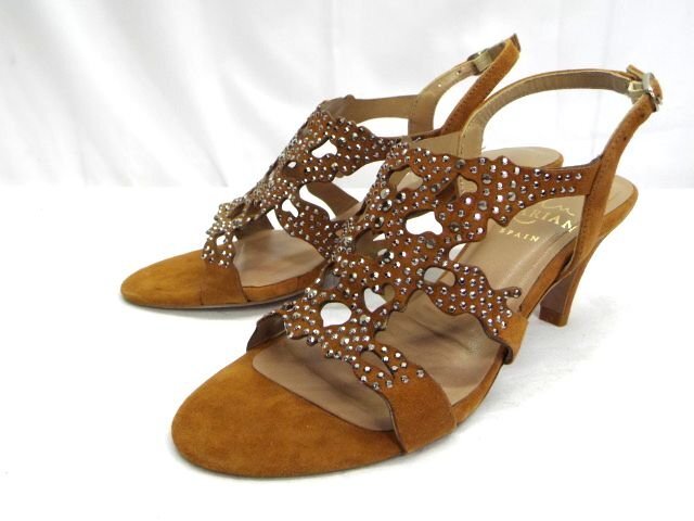美品★MARIAN◎マリアン/サンダル/ラインストーン/スウェードレザー/ブラウン/茶/スペイン製/36サイズ(23.0cm)