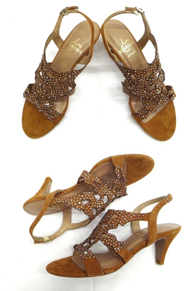 MARIAN★マリアン/サンダル/ラインストーン/スウェードレザー/ブラウン/茶/スペイン製/36サイズ(23.0cm)【中古】K250622TK-07