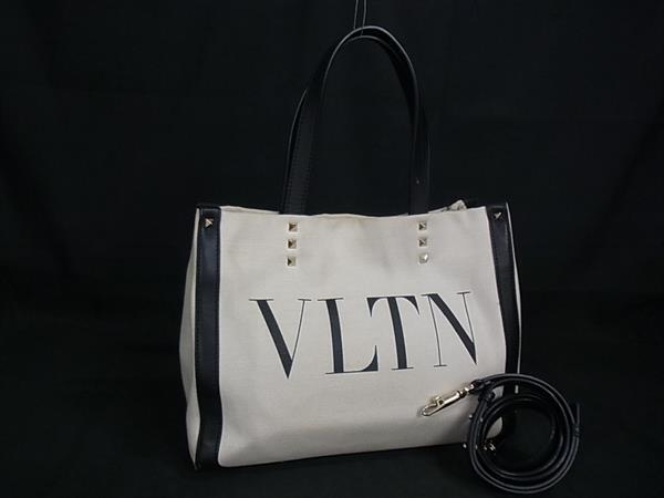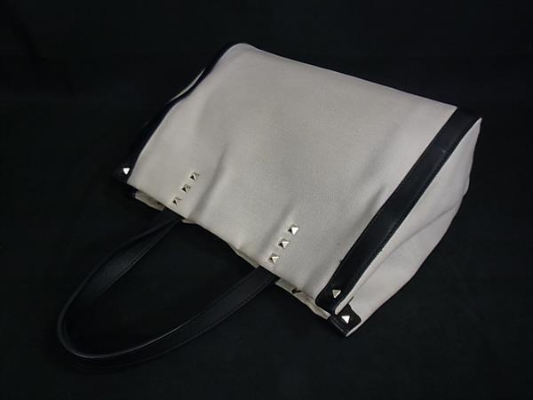 1円 ■美品■ VALENTINO ヴァレンティノ ロックスタッズ キャンバス 2WAY クロスボディ ハンドバッグ ショルダー アイボリー系 BR0847