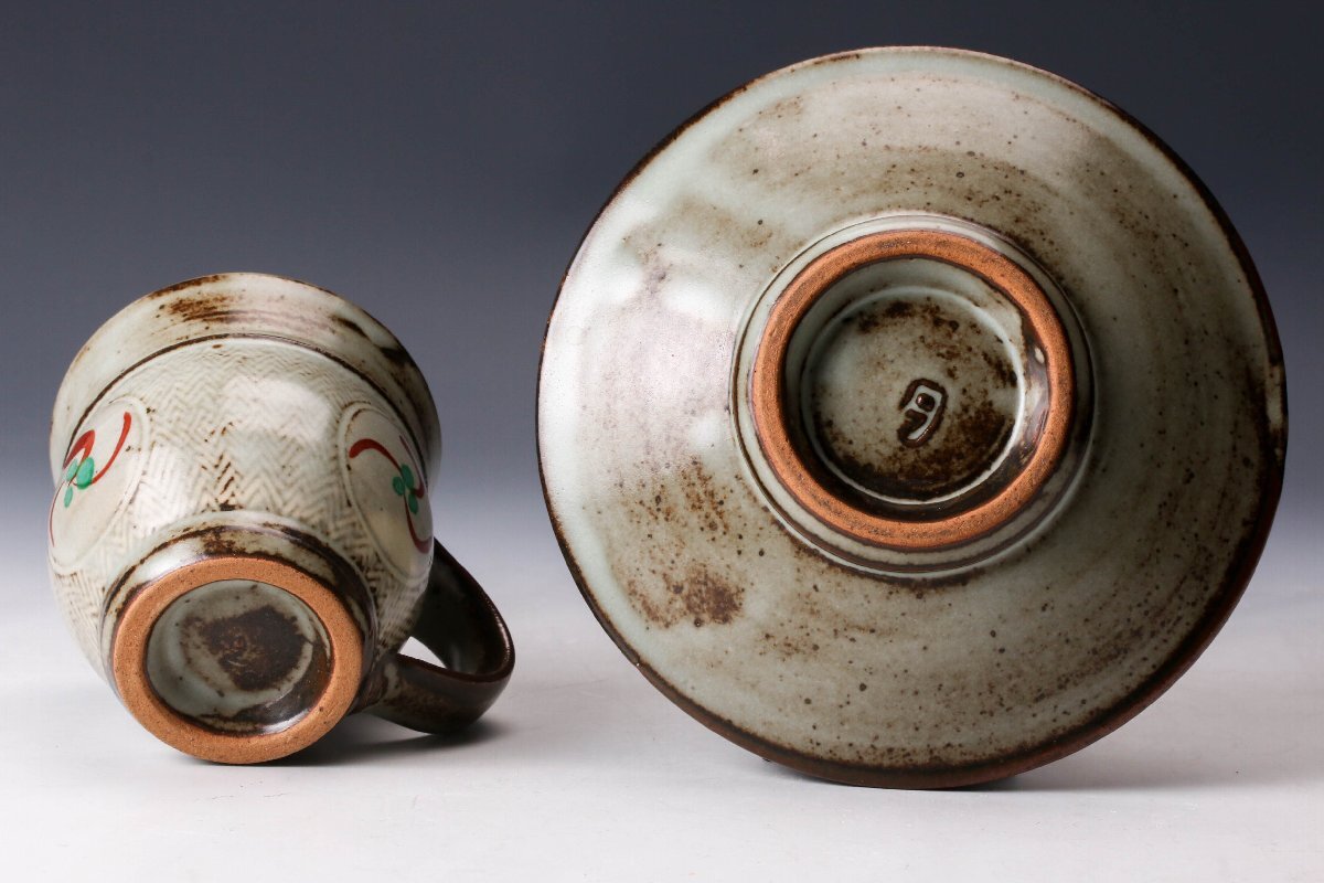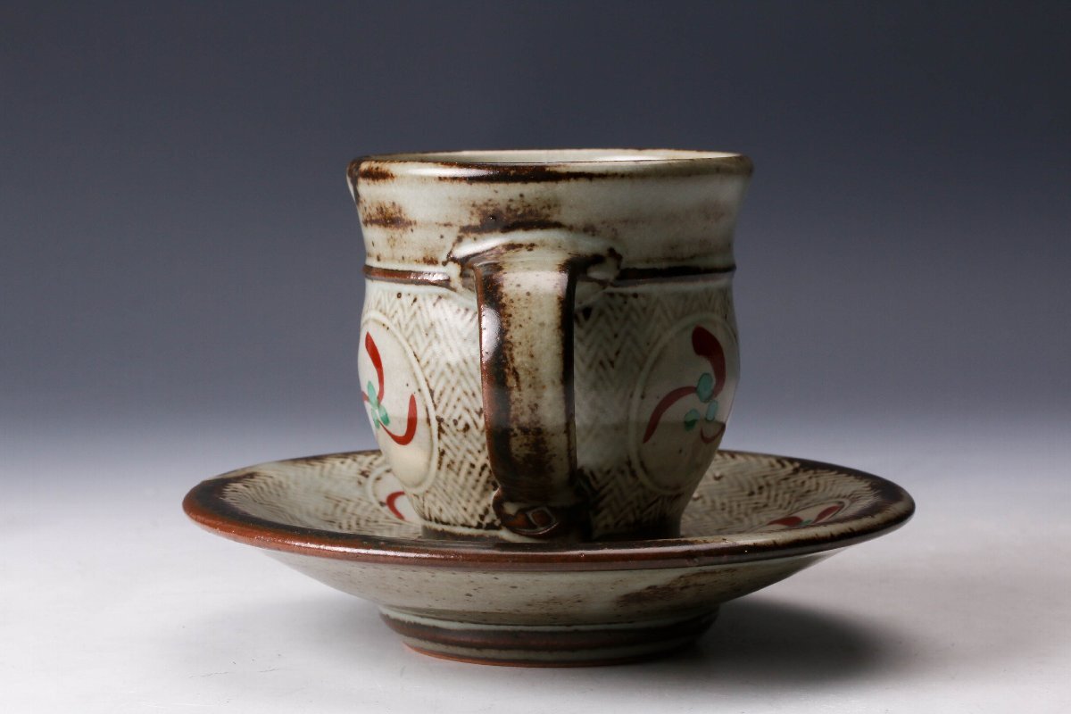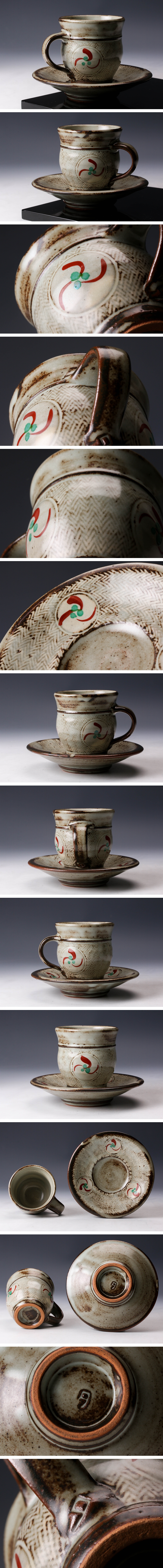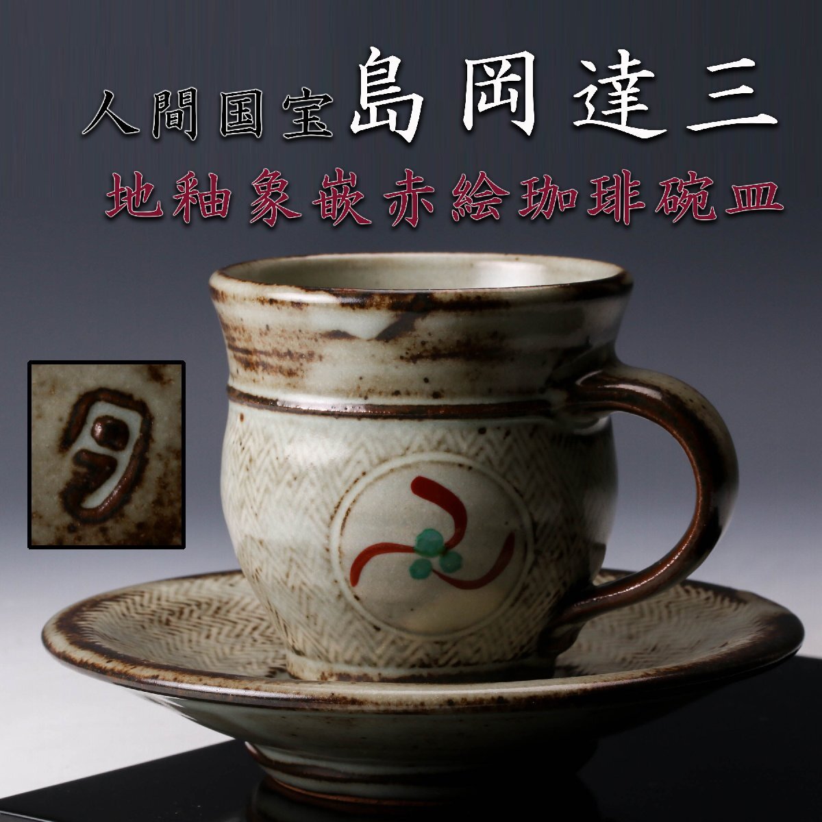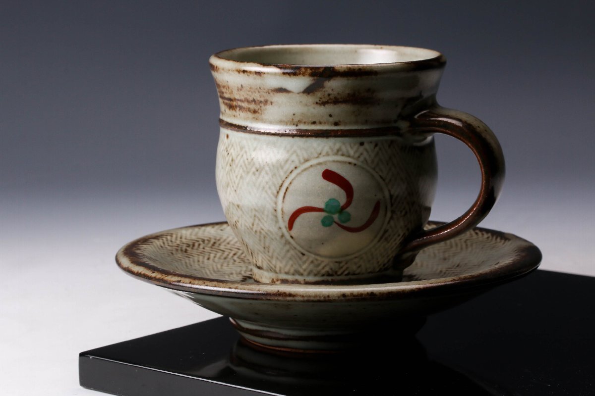 【佳香】人間国宝 島岡達三 地釉象嵌赤絵珈琲碗皿 カップ&ソーサー 本物保証